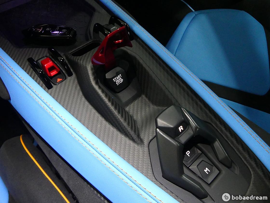 V12엔진은 후륜으로 동력을 공급하며 2개의 전기모터가 각각의 전륜에 동력을 공급한다. 8단 더블 클러치