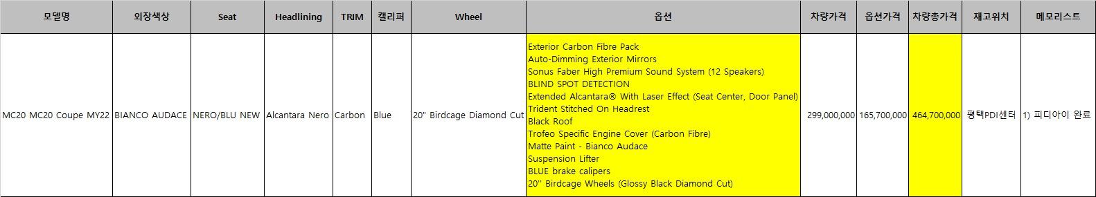 》현금차량/신차가 4억 7000만원(옵션표