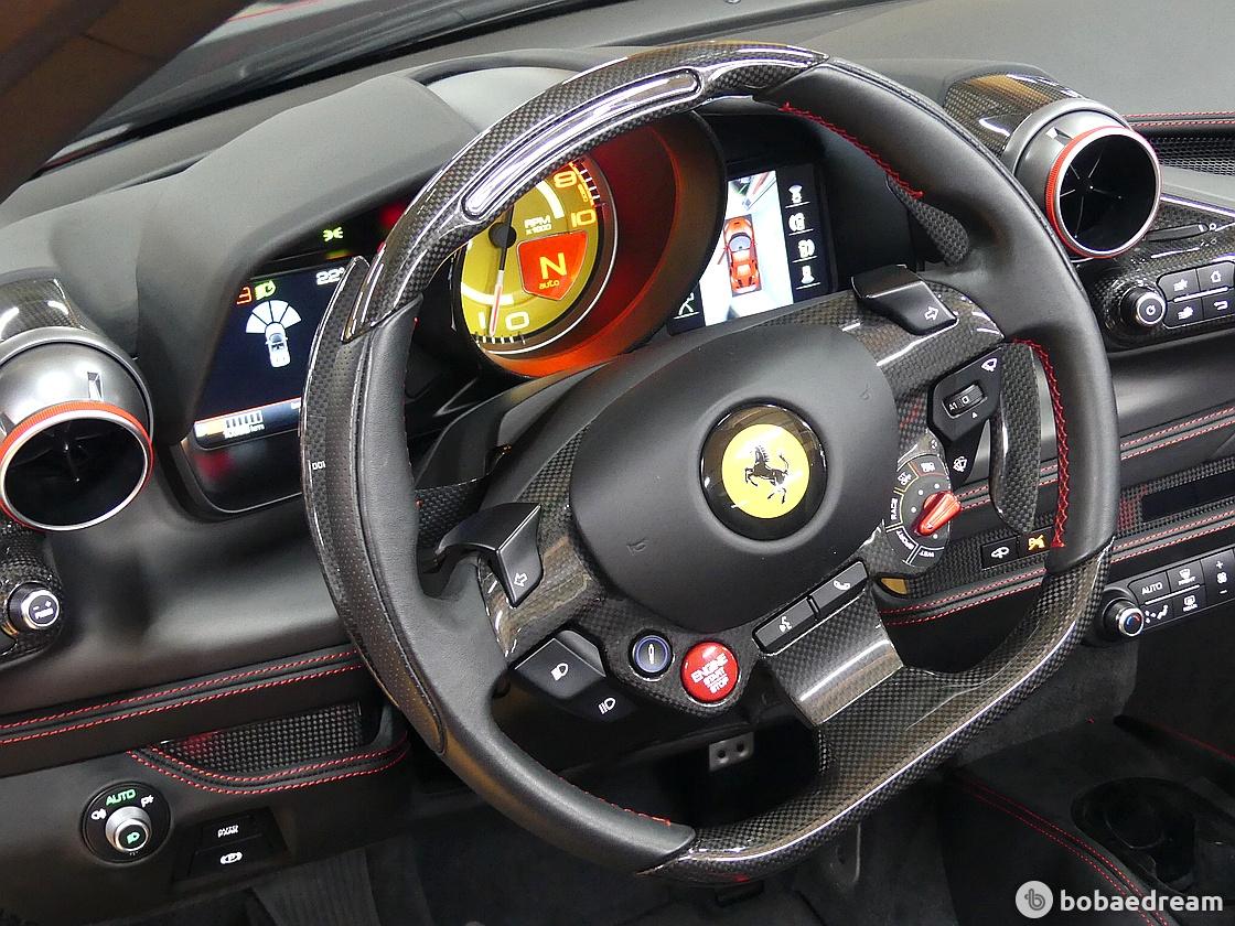 F8 스파이더는 F1 경주차처럼 모든 컨트롤 기능이 신형 스티어링 휠에 탑재된다. 가벼워진 차량을 부각하기