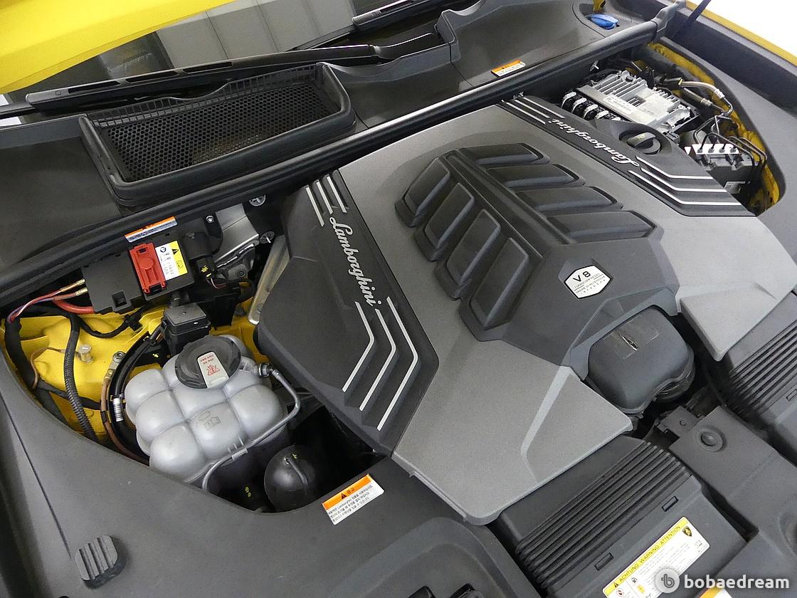 고유의 강력한 주행 성능을 연출하기 위해 우르스의 보닛 아래에는 V8 4.0L 트윈터보 엔진이 자리
