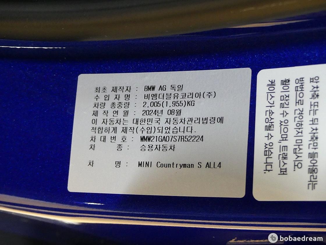 2025년 2월식 미니 쿠퍼 컨트리맨 S 2.0 ALL4 페이버드 모델을 판매합니다.》현금차량/정식출고/무사고 운행
