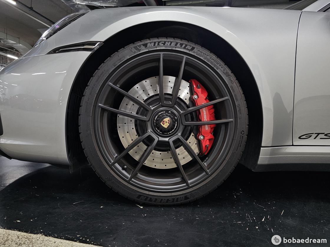 포르쉐액티브서스펜션매니지먼트(PASM)가 적용된 GTS 전용 서스펜션과 911 터보의 고성능 브레이크 시스템이