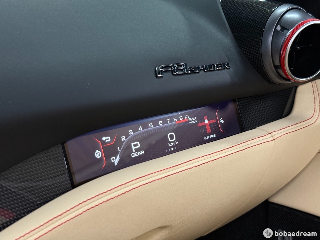 F8 스파이더는 F1 경주차처럼 모든 컨트롤 기능이 신형 스티어링 휠에 탑재된다. 가벼워진 차량을 부각하기