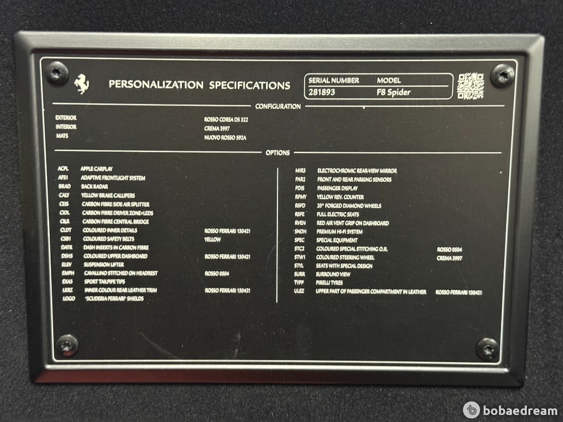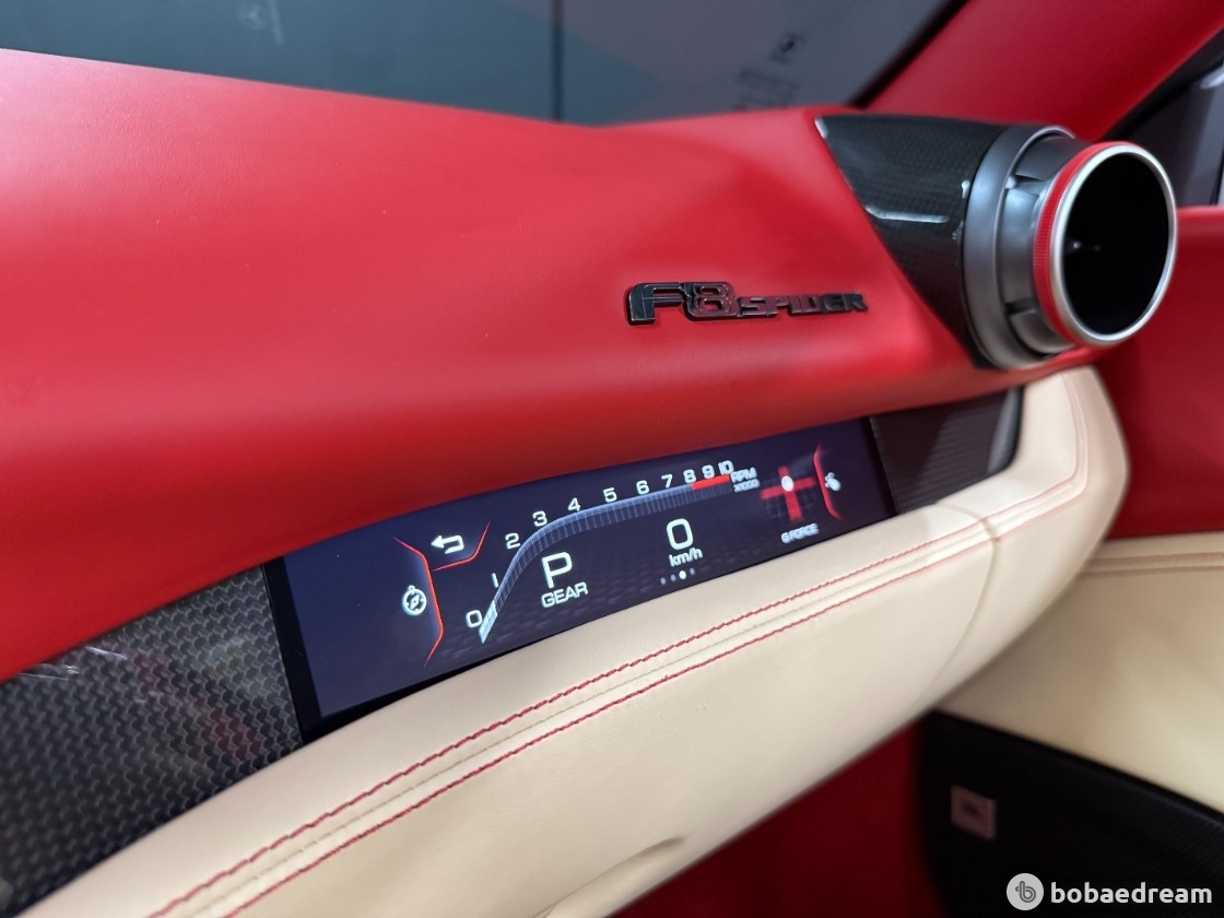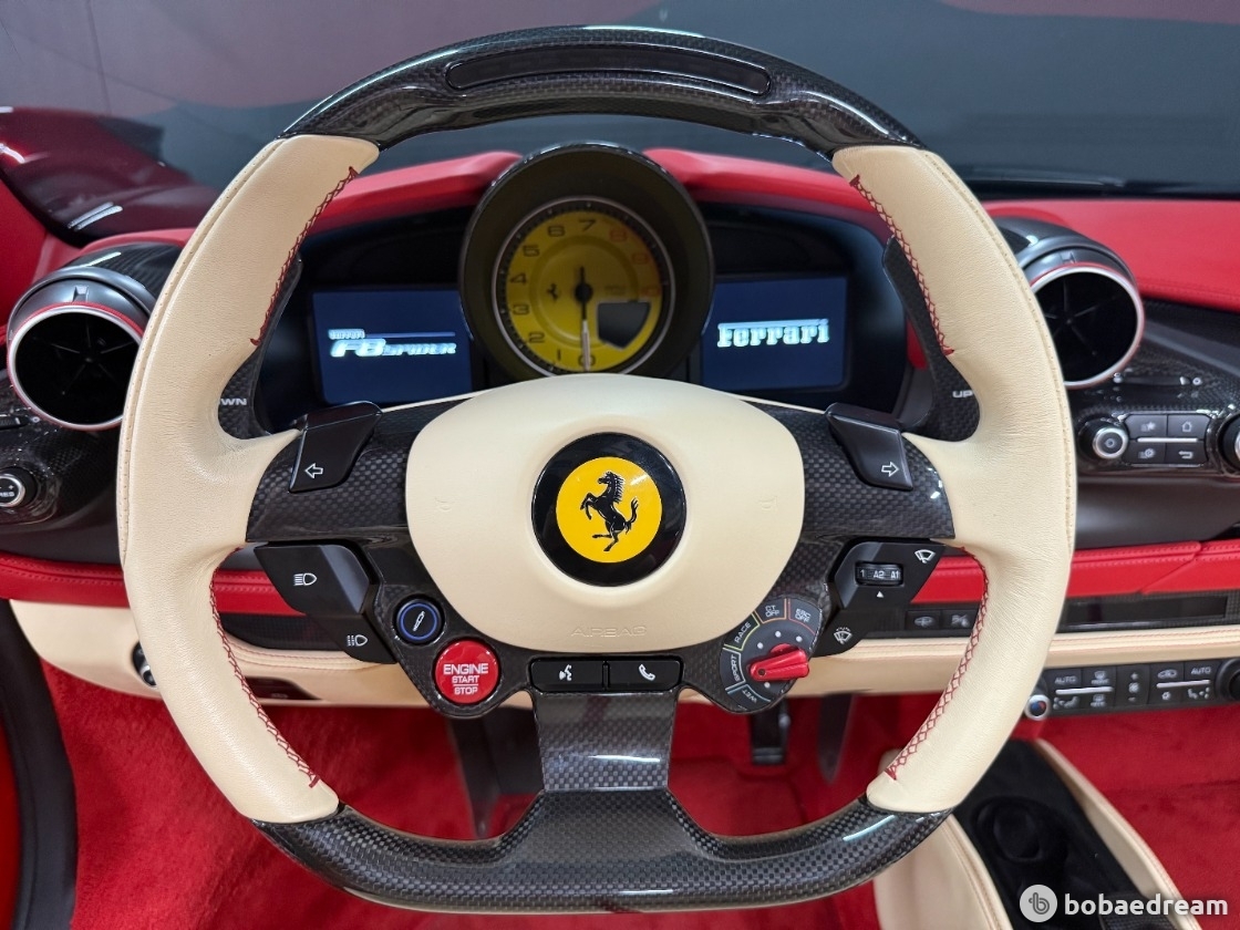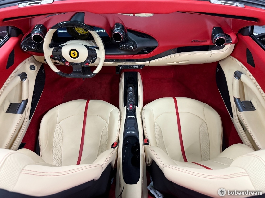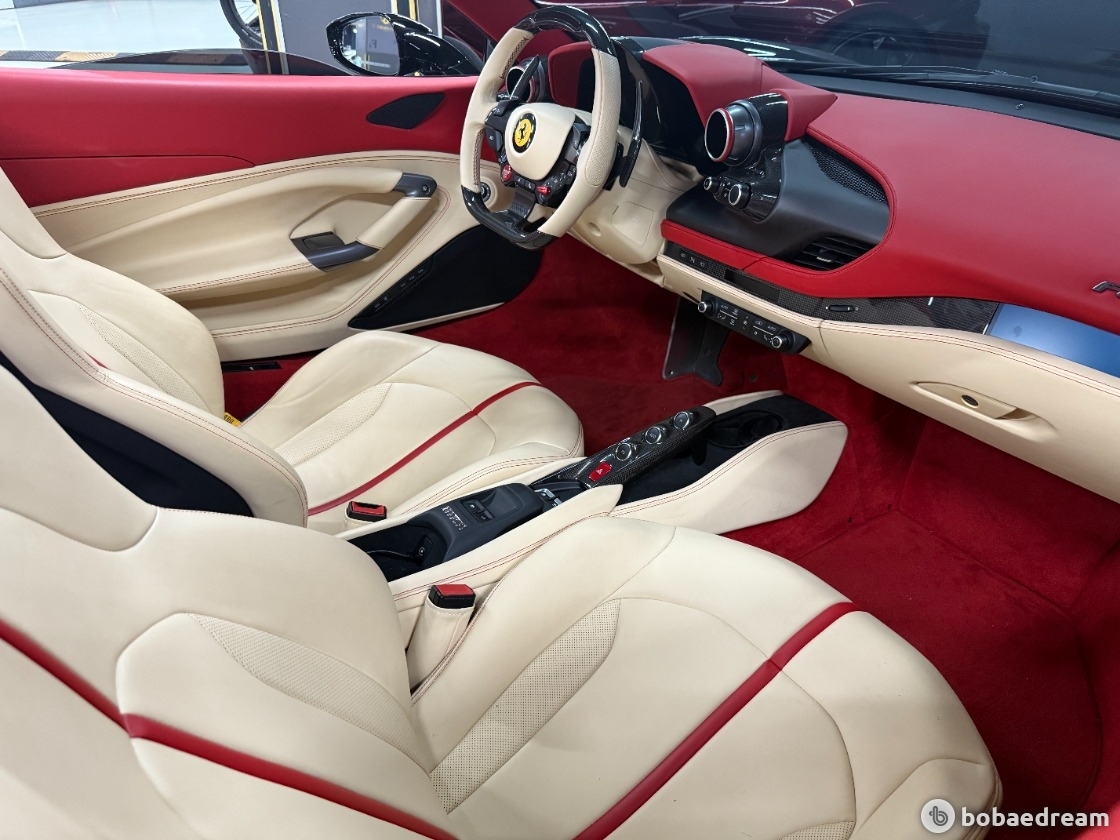 2022년 8월식 페라리 F8 스파이더 3.9 V8을 판매합니다.》금융리스(무늬리스) 》정식출고/무사고 운행》12,160km 짧은 신차급 키로수》로쏘 코르사 레드 외장 컬러(블랙랩핑작업)》고품격 매력의 베이지&레드 투톤 실내 인테리어》카본옵션(LED핸들/사이드스플리터/센터터널브릿지/인테리어)》JBL오디오/서라운드뷰/동승석디스플레이/풀전동시트/인코넬 풀배기 가변 모듈 작업▶본 차량상태..- 금융리스(무늬리스) 차량