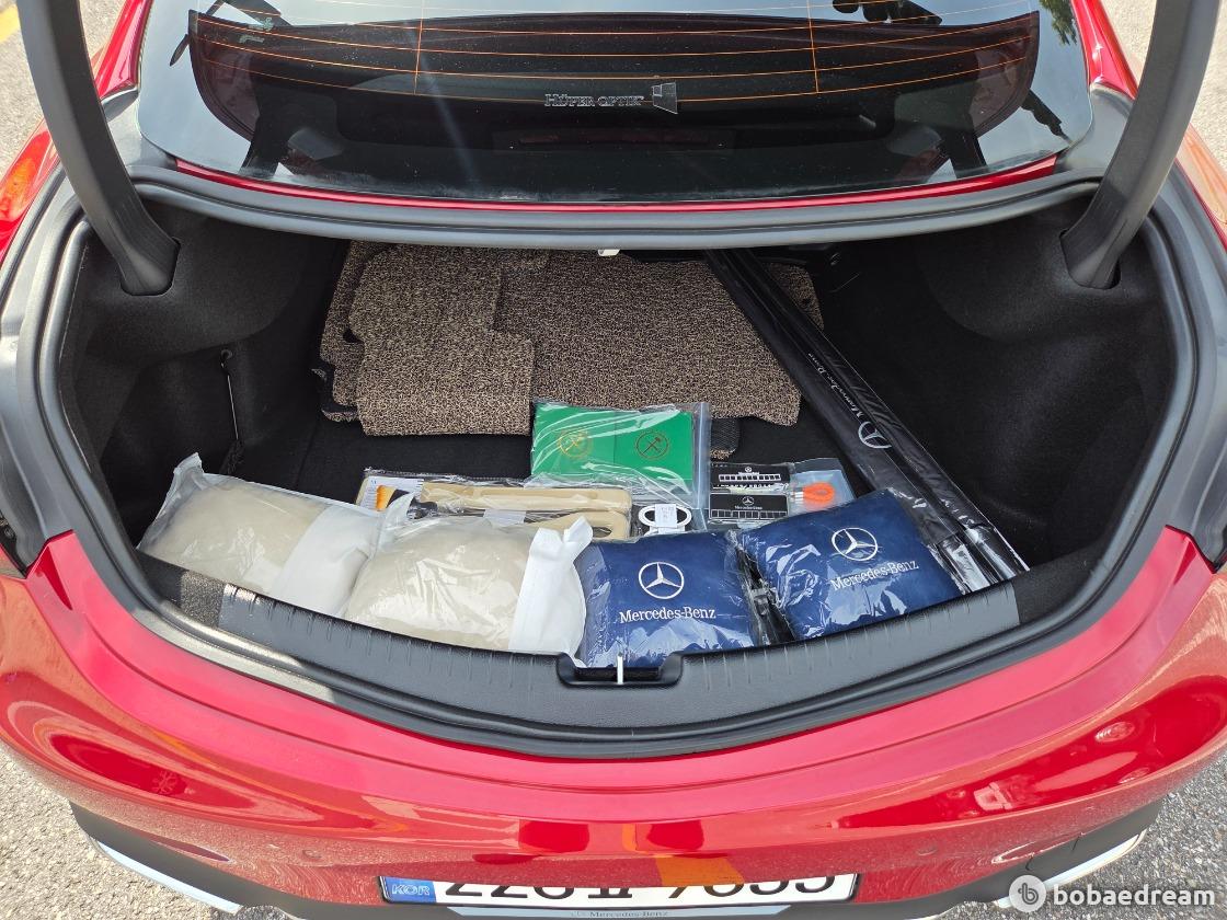 CLE 쿠페 트렁크 용량은 420ℓ로 골프백 3개 적재도 가능하다. CLE 쿠페 실내에는 헤드레스트 일체형 스포츠
