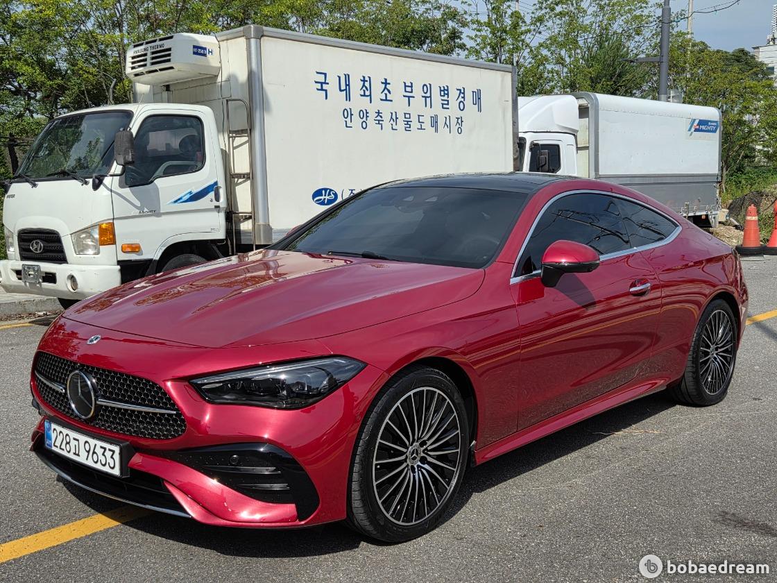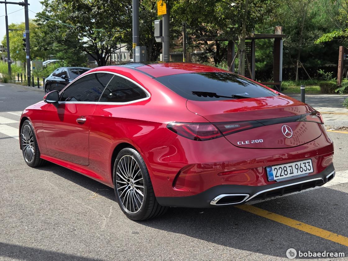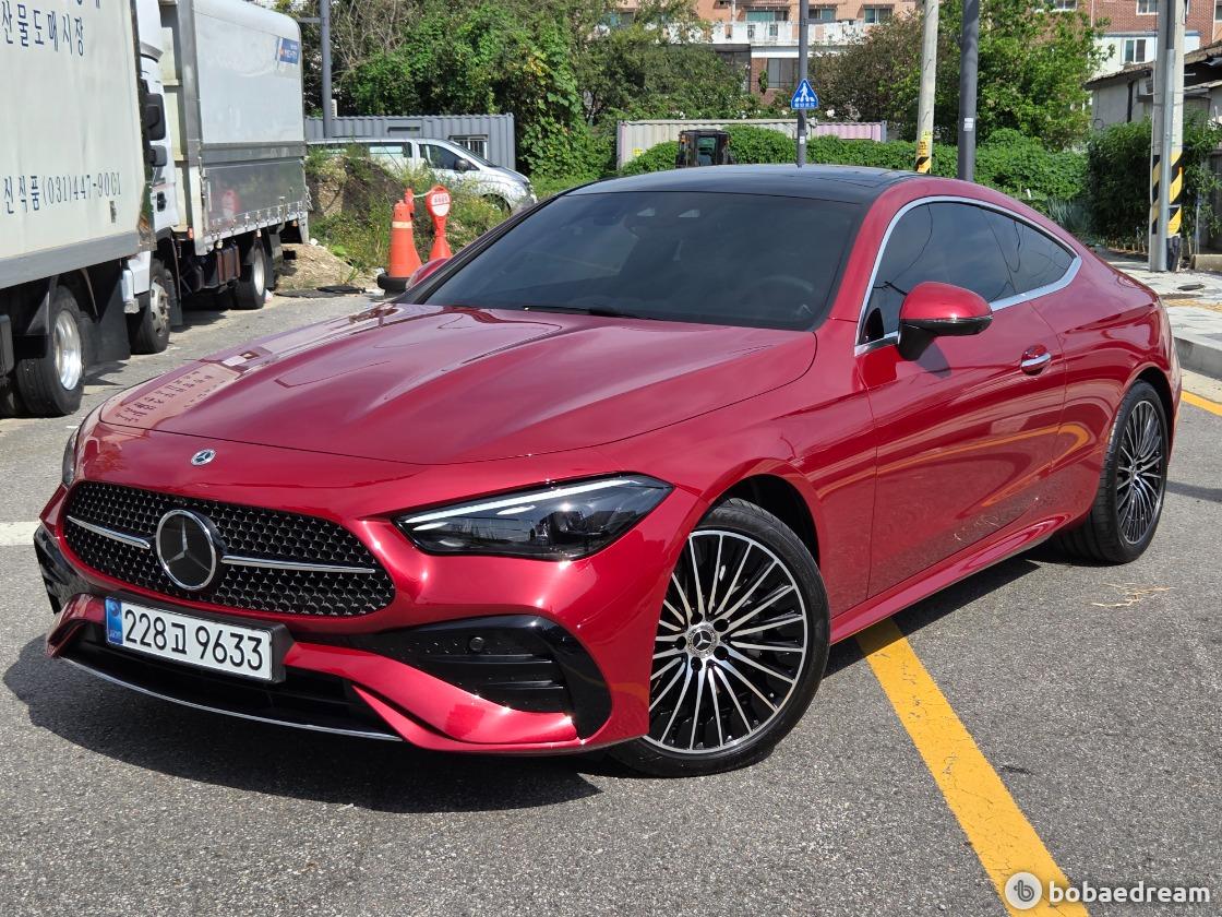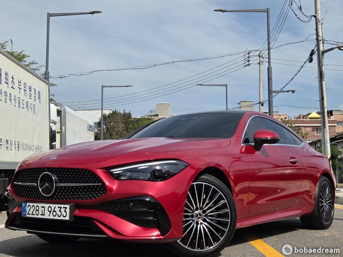 2025년 5월식 벤츠 CLE200 쿠페 모델을 판매합니다.》1인신조/현금차량》무사고 주행(무빵+무칠+보험이력 X)》키 2개/메뉴얼 有/블랙박스 2ch/하이패스 有》한성 강남 전시장 출고/한성 보증 1년 추가 연장》상품화 완료/ 출고 선물로 고급유 가득 주유 대기중》뉴팩처 파타고니아 레드 브라이트 (인디오더 유료컬러)▶본 차량상태..- 현금