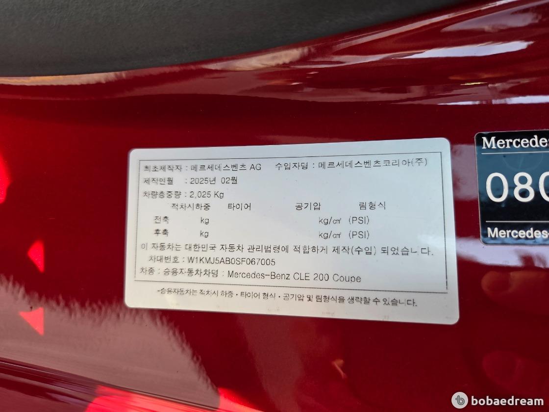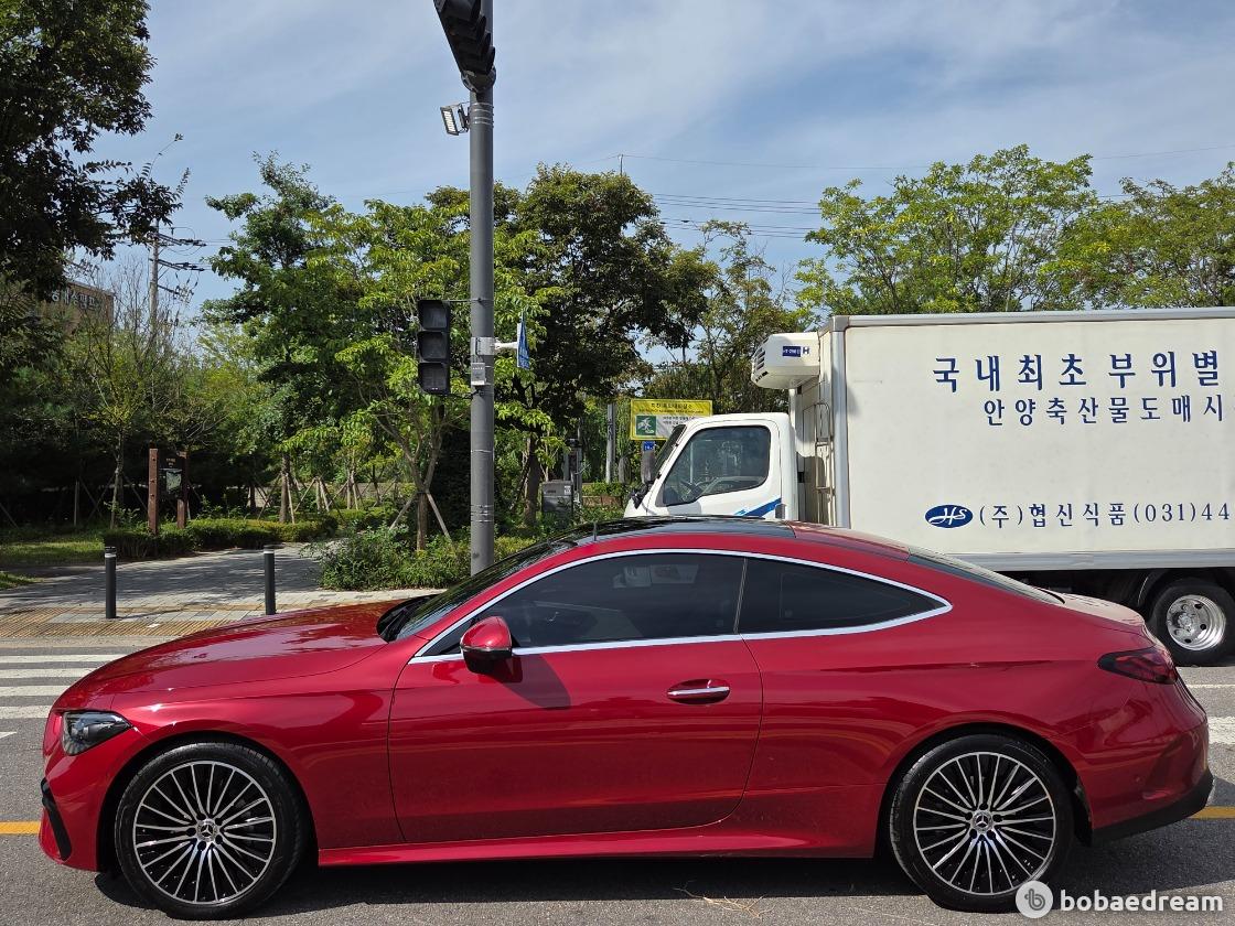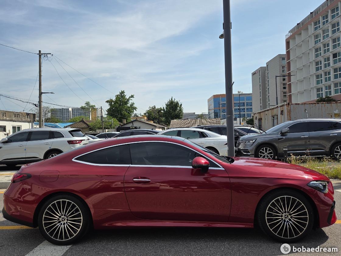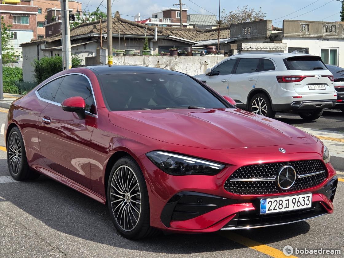 2025년 5월식 벤츠 CLE200 쿠페 모델을 판매합니다.》1인신조/현금차량》무사고 주행(무빵+무칠+보험이력 X)》키 2개/메뉴얼 有/블랙박스 2ch/하이패스 有》한성 강남 전시장 출고/한성 보증 1년 추가 연장》상품화 완료/ 출고 선물로 고급유 가득 주유 대기중》뉴팩처 파타고니아 레드 브라이트 (인디오더 유료컬러)▶본 차량상태..- 현금