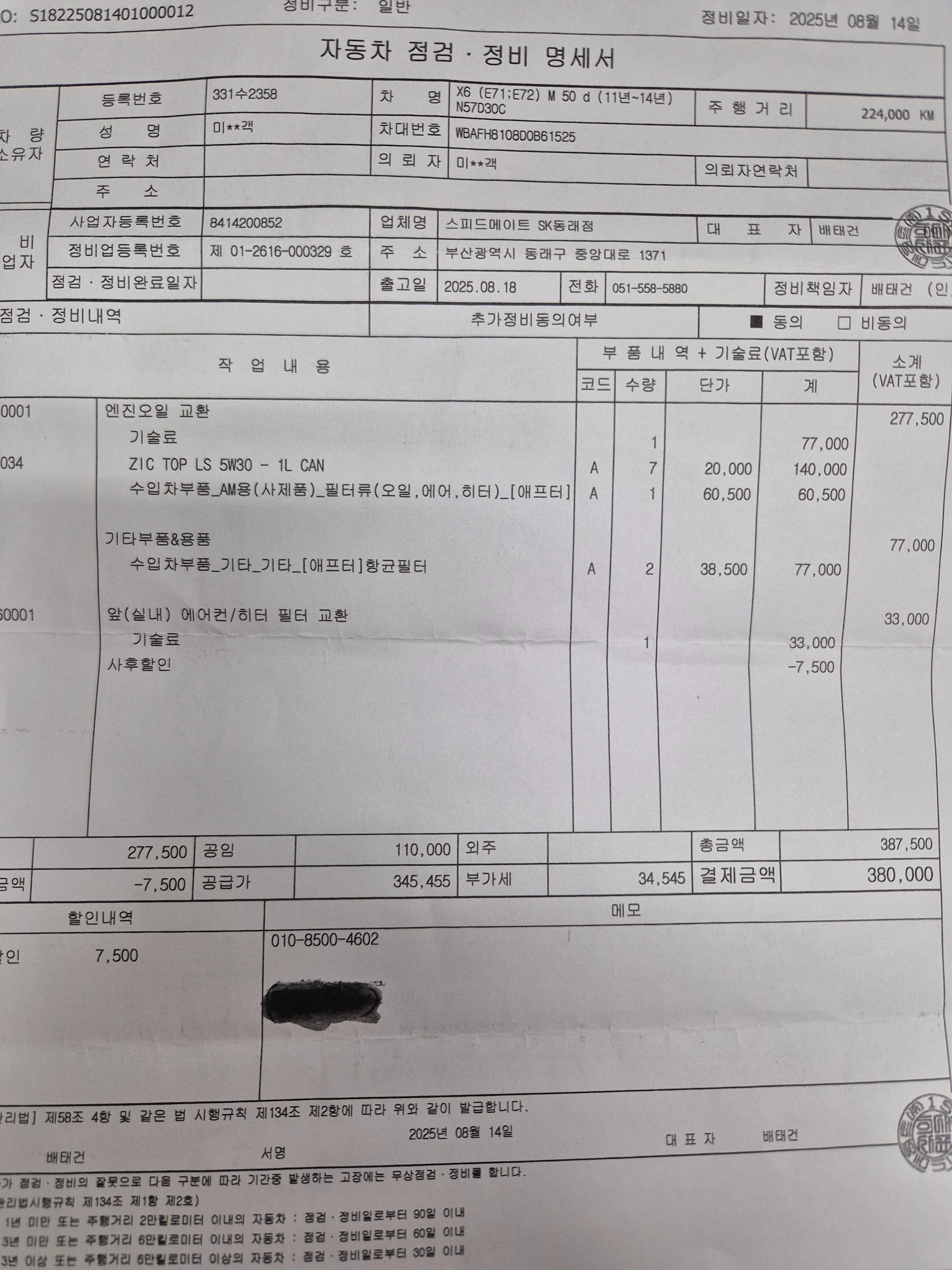 ▶자동차 정비 내역