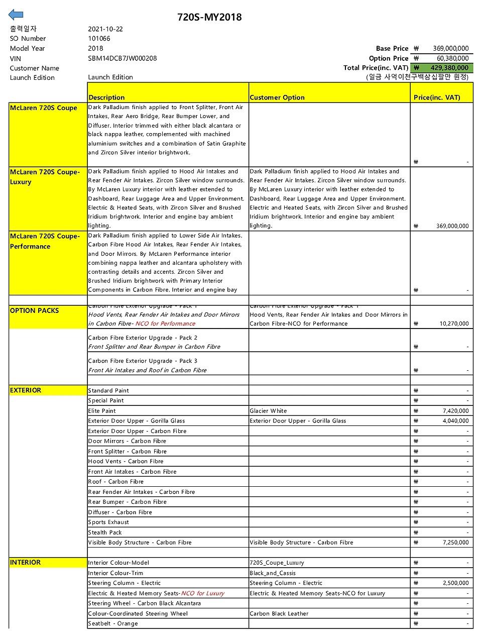 2018년형 (2017년 8월 등록) 맥라렌 720S 쿠페 모델을 판매합니다.