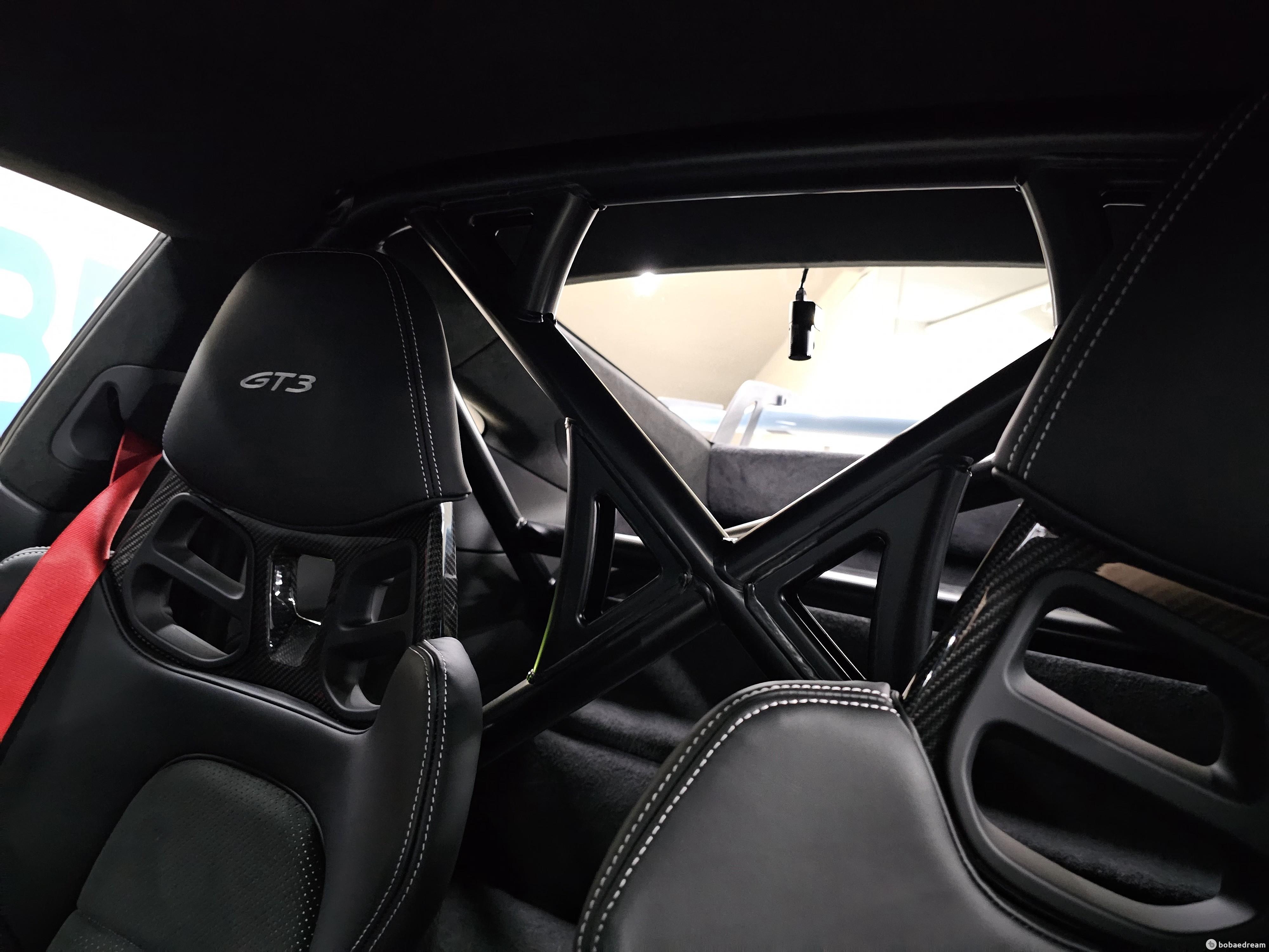 비롯해 탄소섬유 경량 루프 등 GT3 전용 옵션을 고를 수 있다. 탄소섬유 사이드미러 커버, 어두운 컬러로