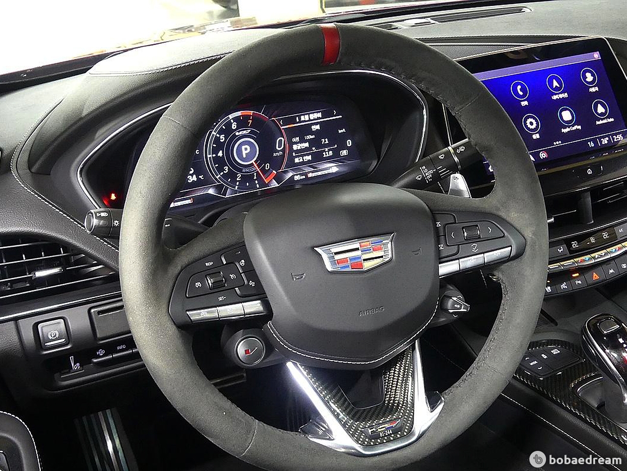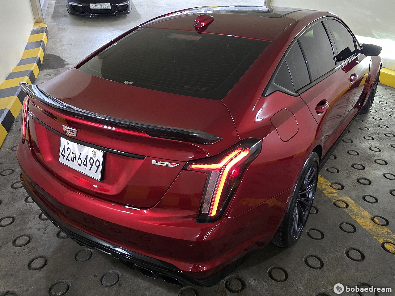 2022년 3월식 캐딜락 CT5 V 6.2 블랙윙 모델을 판매합니다.》소모품 보증 26년 3월까지 무상》정식출고/무사고 운행/짧은 주행거리 보유》6.2L 핸드 빌트 슈퍼차저 V8 엔진, 677마력 초고성능 세단