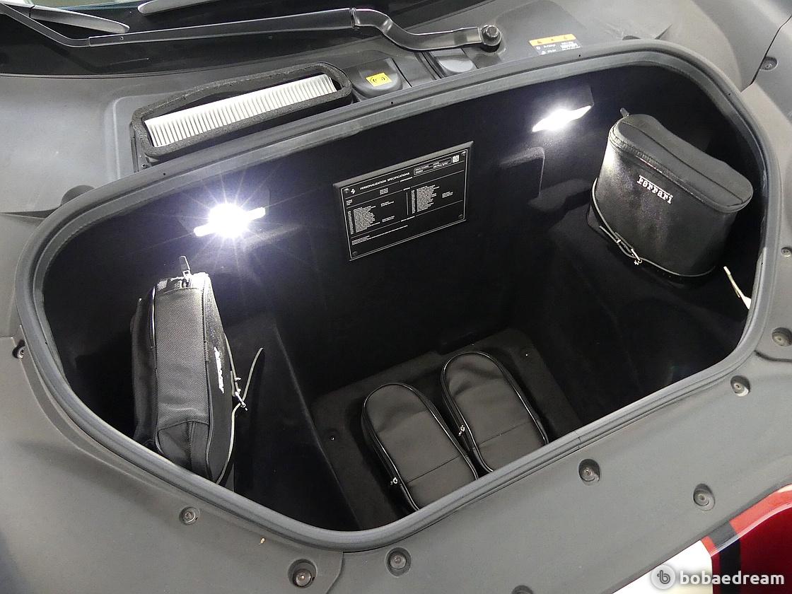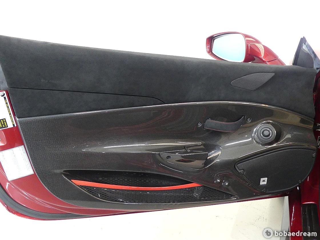 페라리는 컨버터블의 무게를 줄이기 위해 내부 문손잡이를 가죽 스트랩으로 만들거나 바닥 카페트도