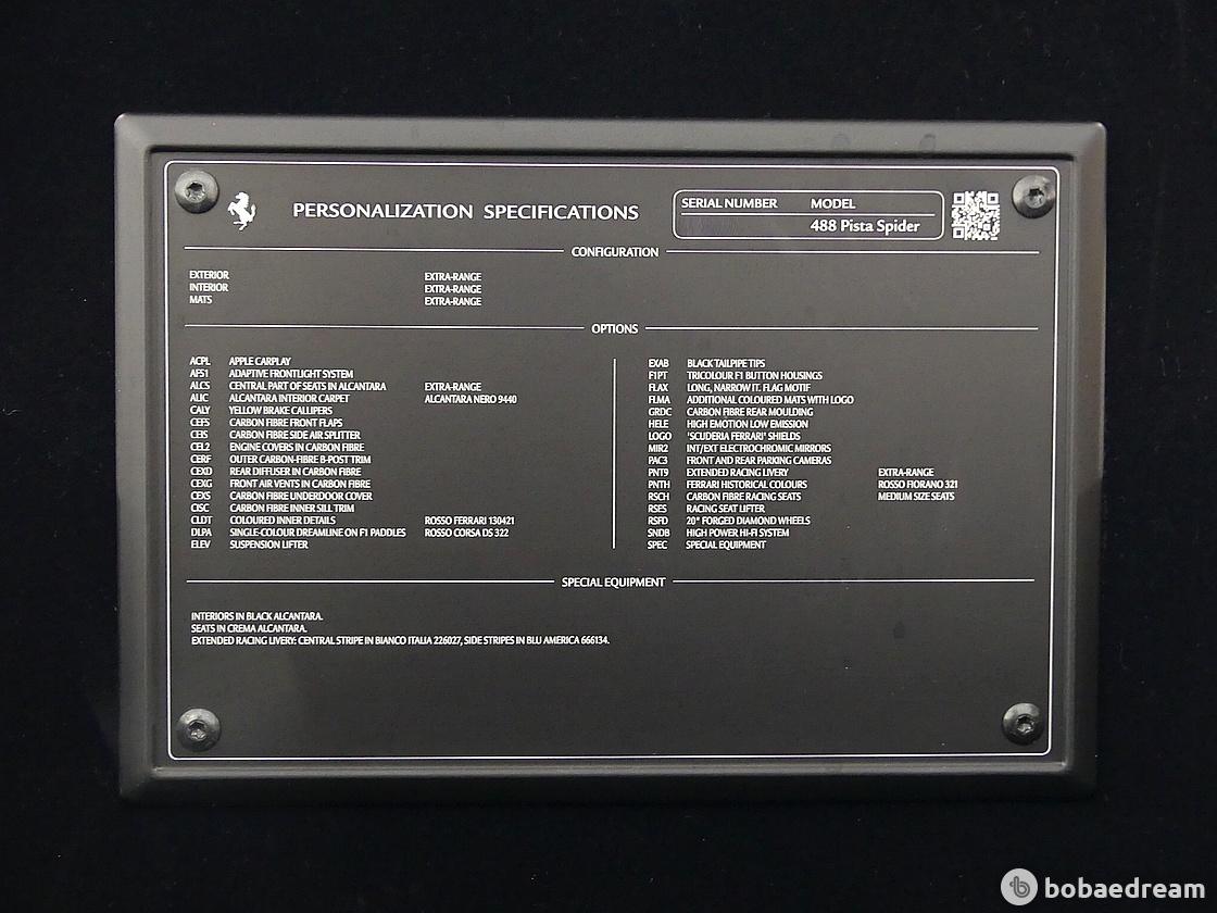 또한 스파이더 모델은 쿠페와 다르게 보닛 위의 푸른색 줄무늬가 리어윙 아래로 이어져 있다. 페라리는 이것이