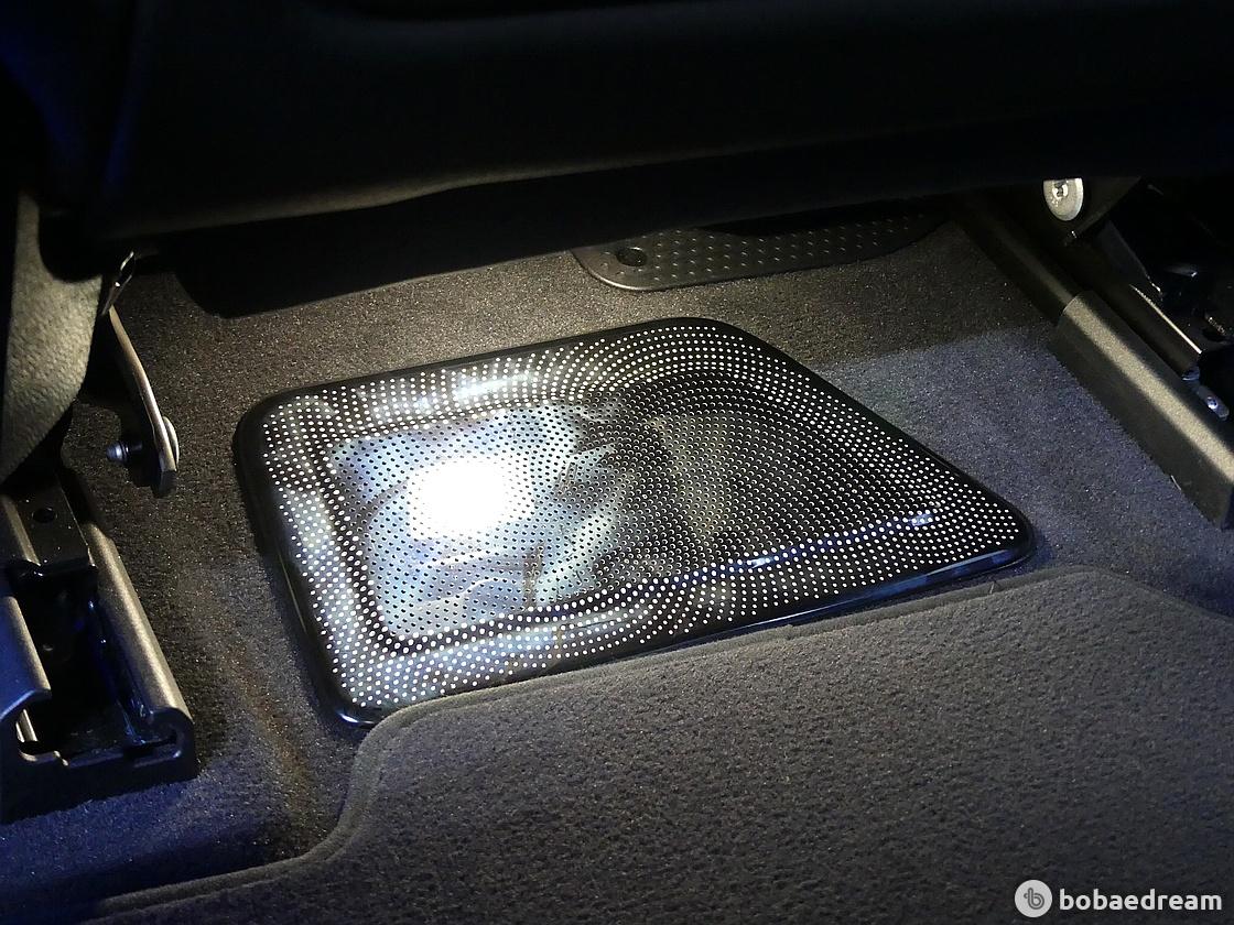 스피커는 시트 내장재 안쪽에 보이지 않게 장착됐고, 헤드업디스플레이 (HUD) 프로젝터 역시 계기판 구석으로