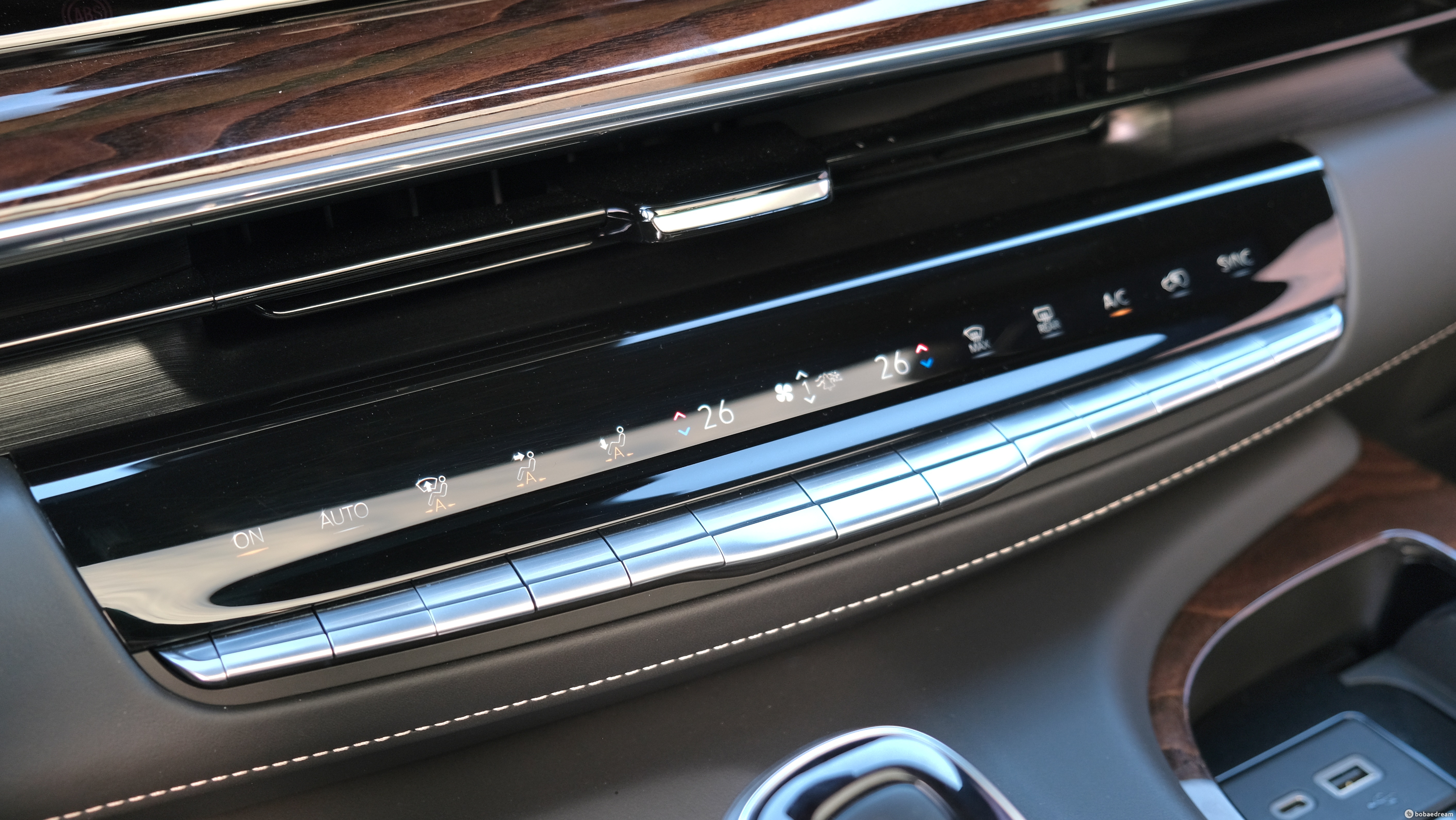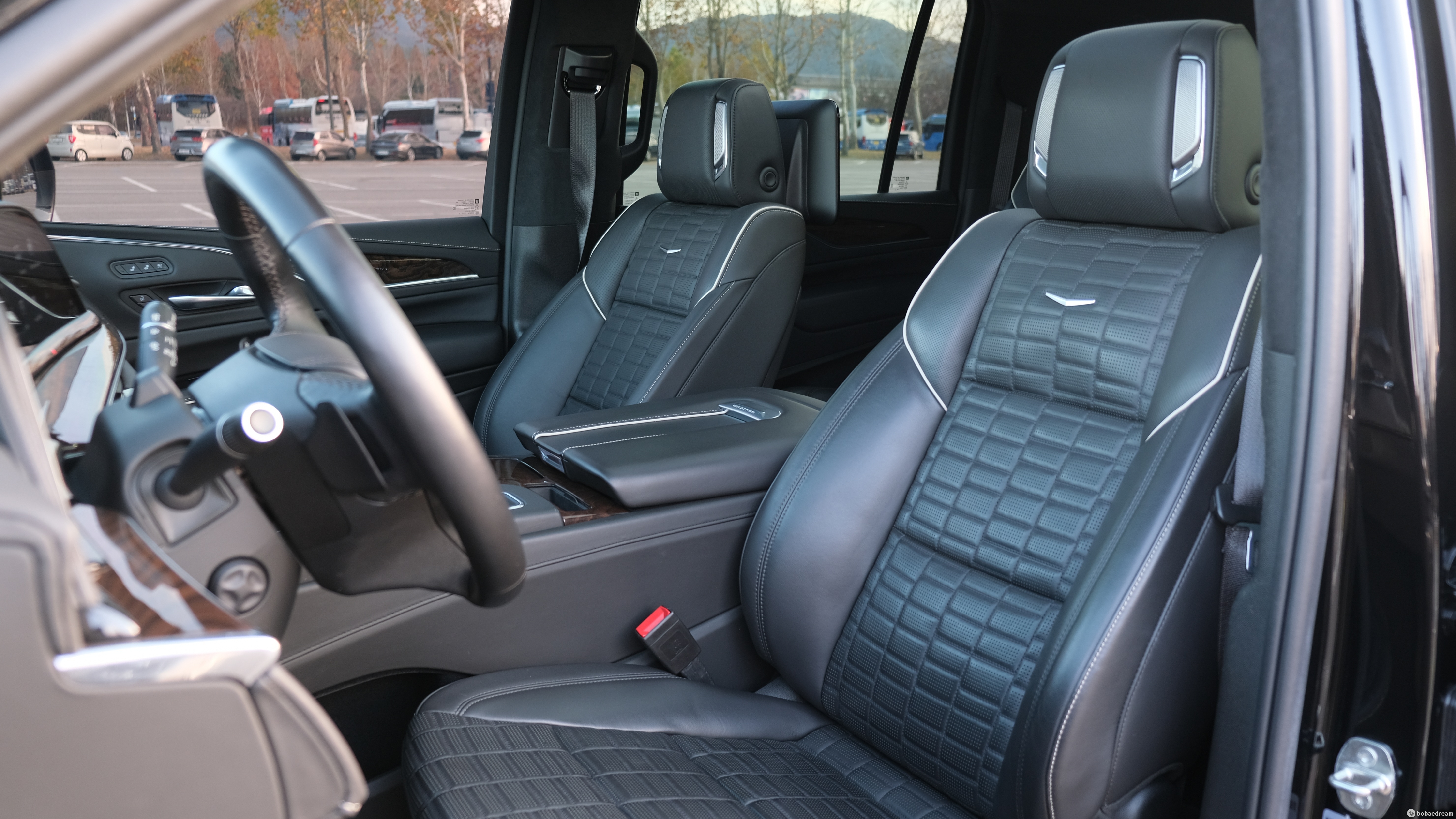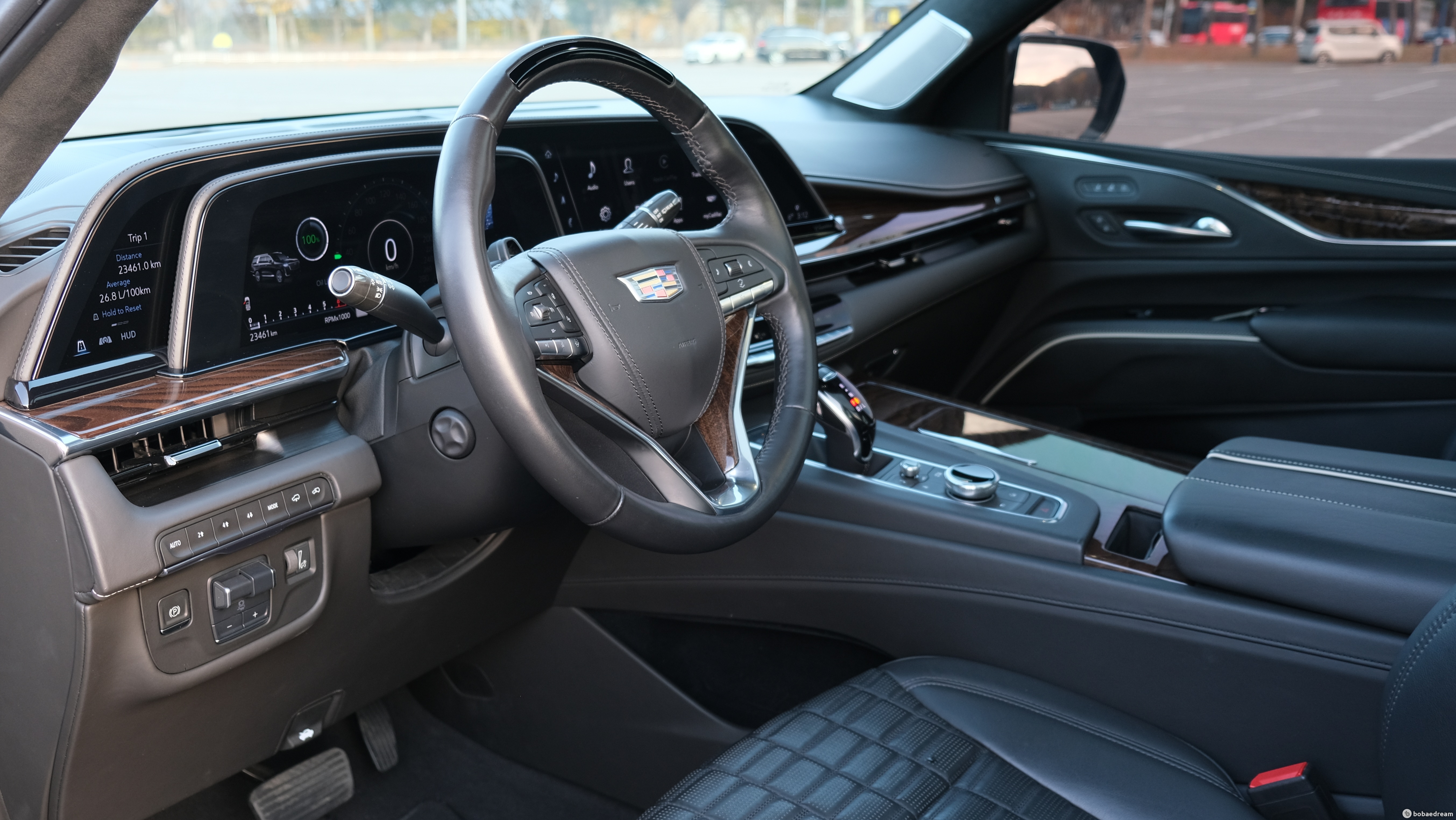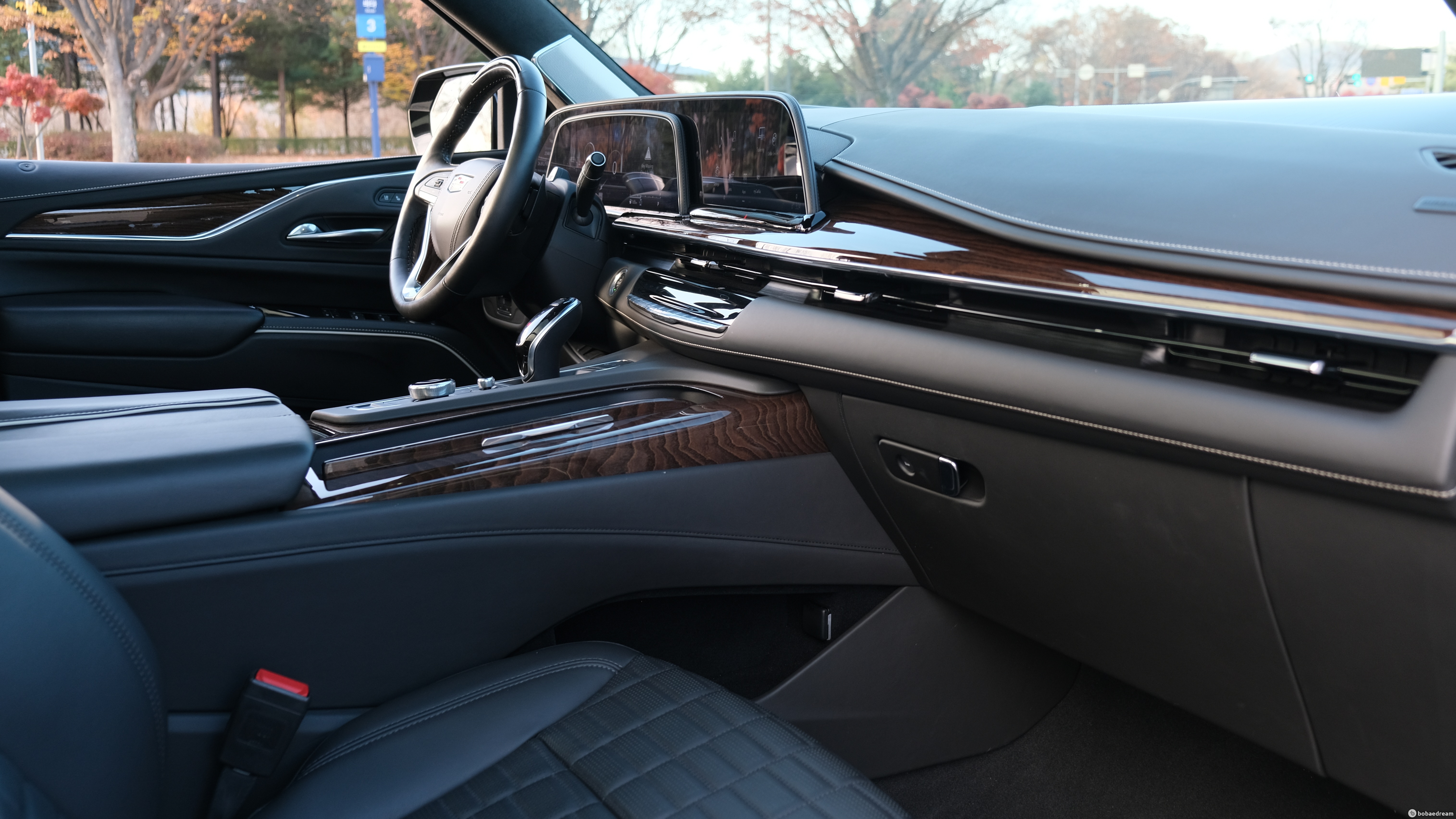 대시보드와 콘솔부, 도어의 안쪽에는 원목 소재가 광범위하게 사용됐다. 캐딜락은