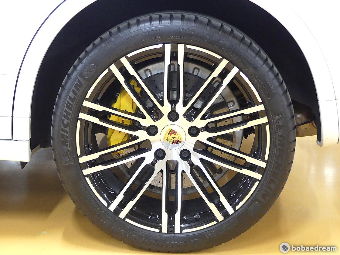 카이엔 터보 S에는 테두리가 블랙으로 도색된 21인치 911 터보 디자인 휠을 비롯해 포르쉐 다이내믹