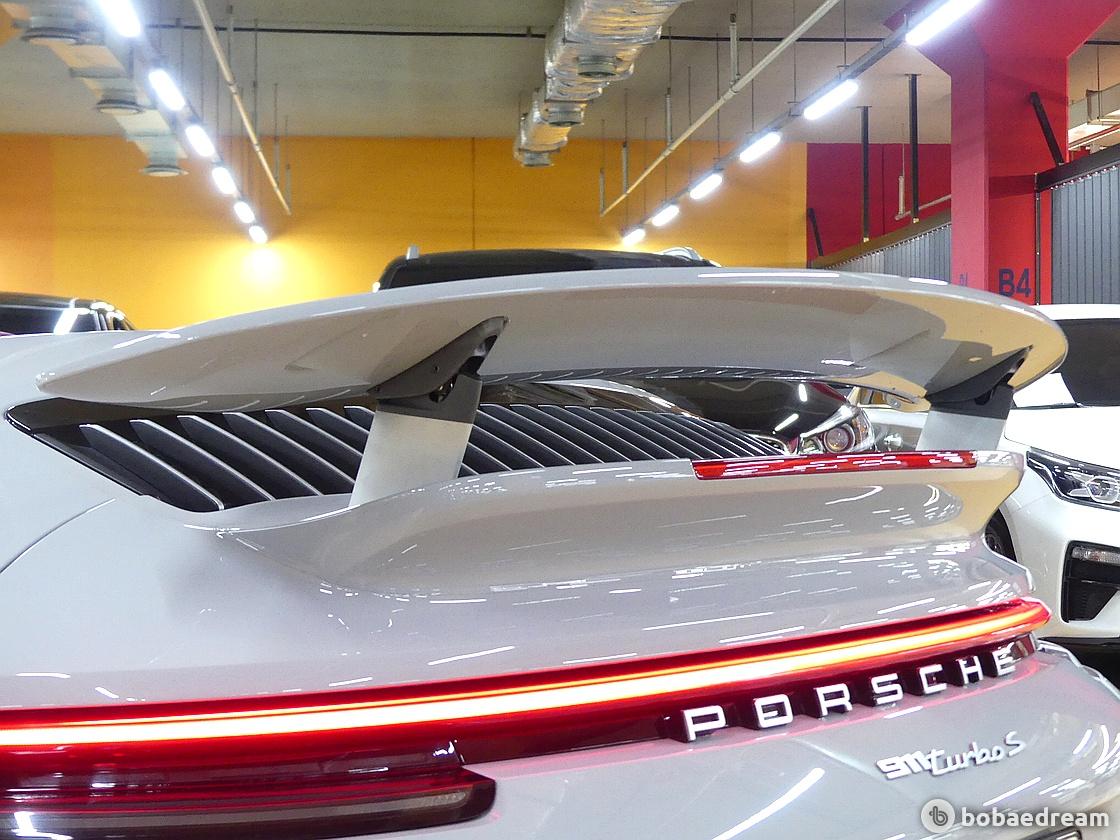 강인한 모습의 리어 윙 부분에는 통합형 에어 인테이크로 '911 터보 S'의 날렵한 차체를 강조한다. 전형적인