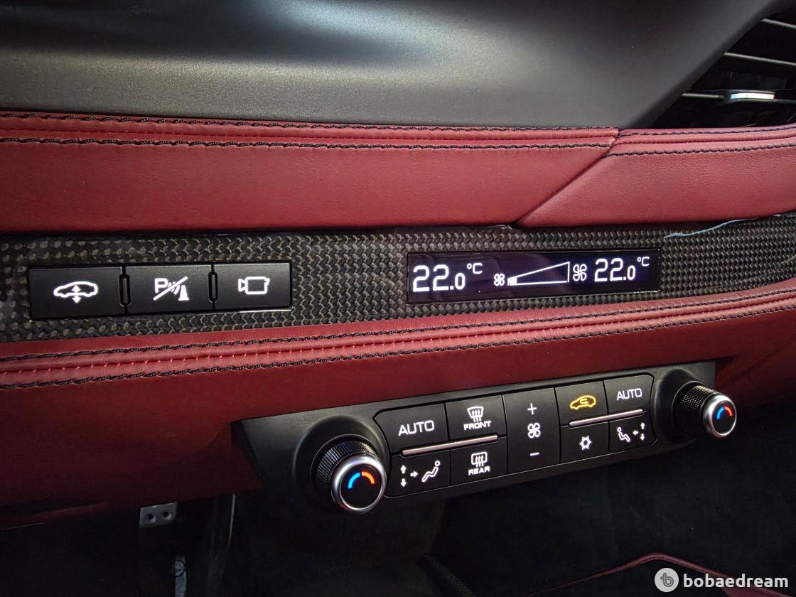 가볍고 깔끔한 느낌을 만들었다. 옵션으로 제공되는 7인치 패신저 터치스크린이 적용되었고, 페라리 고유의