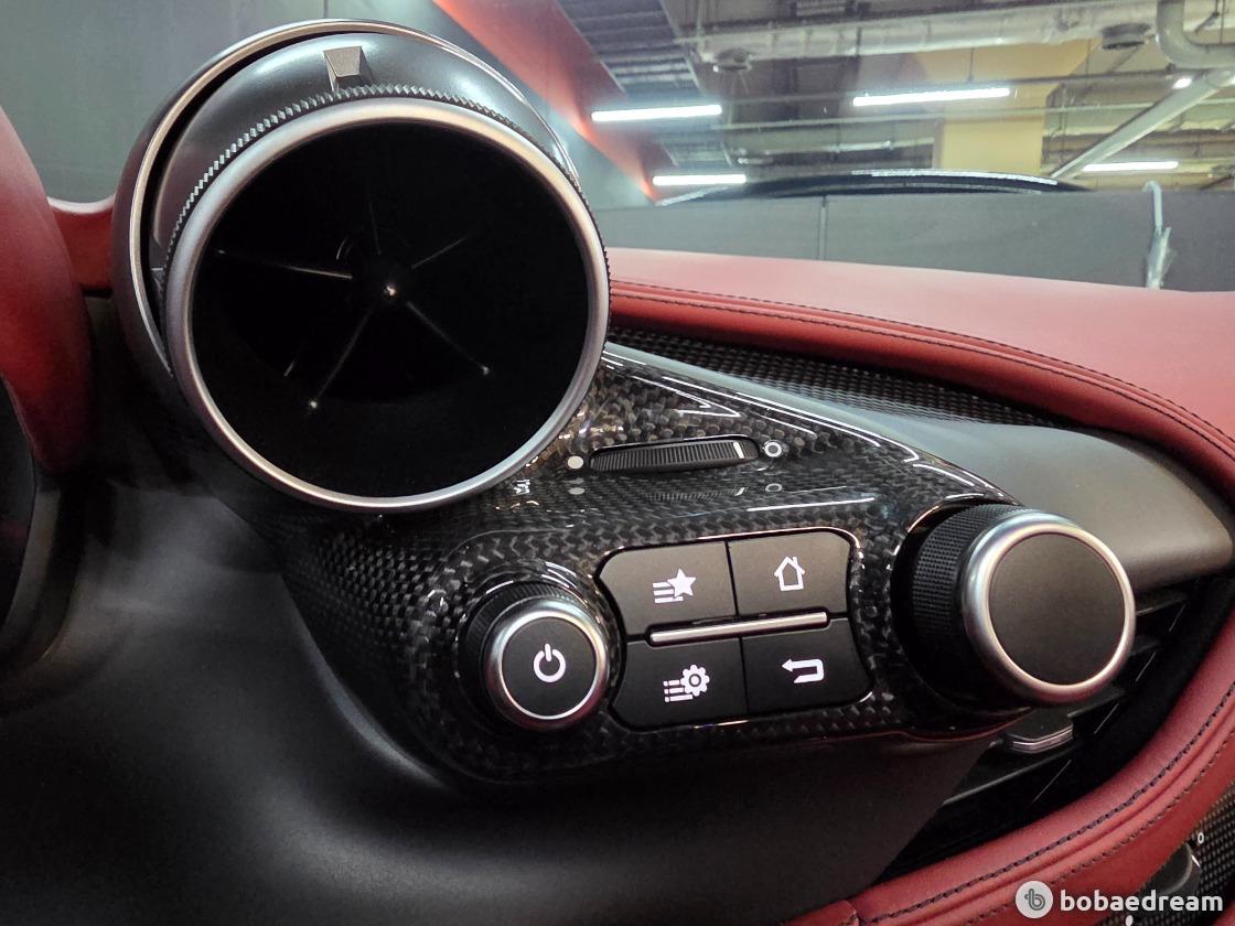 위한 알루미늄 패널이 대시보드에 적용되었다. 또한 카본 파이버를 중심으로 상하단을 구분해 전체적으로
