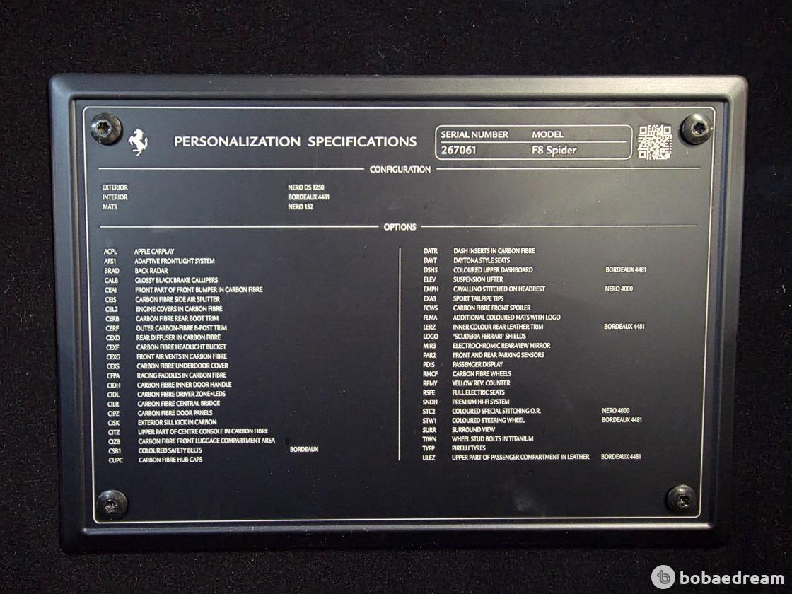 그 어떤 페라리 F8 스파이더보다도 독보적인 풀카본 옵션이 추가 된 차량입니다. 시크한 블랙 외장 컬러와