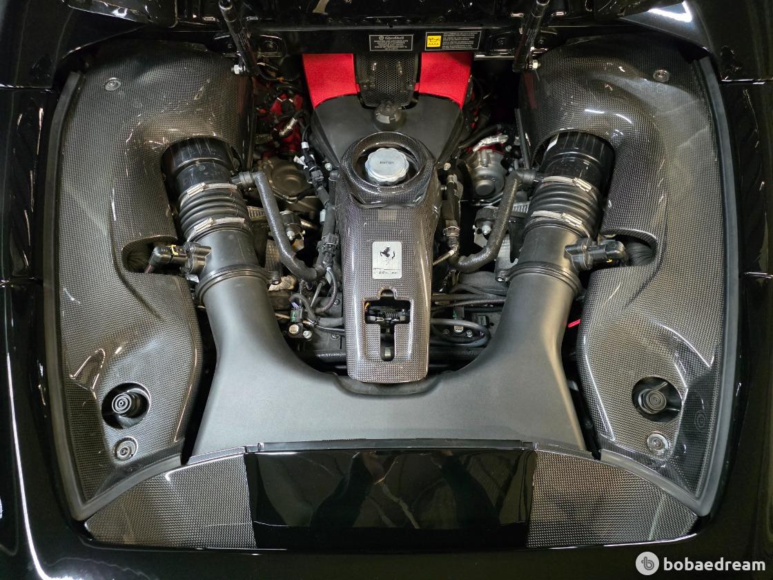 488 스파이더 대비 출력을 50마력 높이기 위해 트랙 전용 모델인 488 챌린지(488 Challenge)에서 차용한