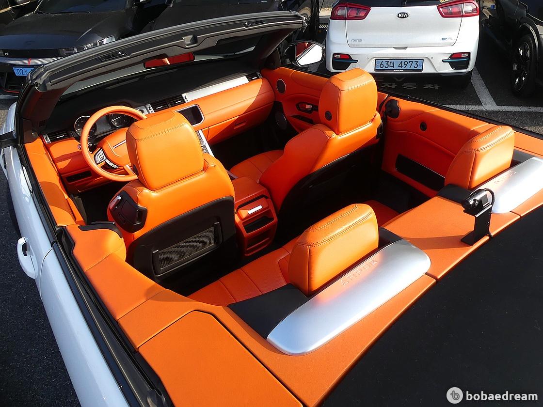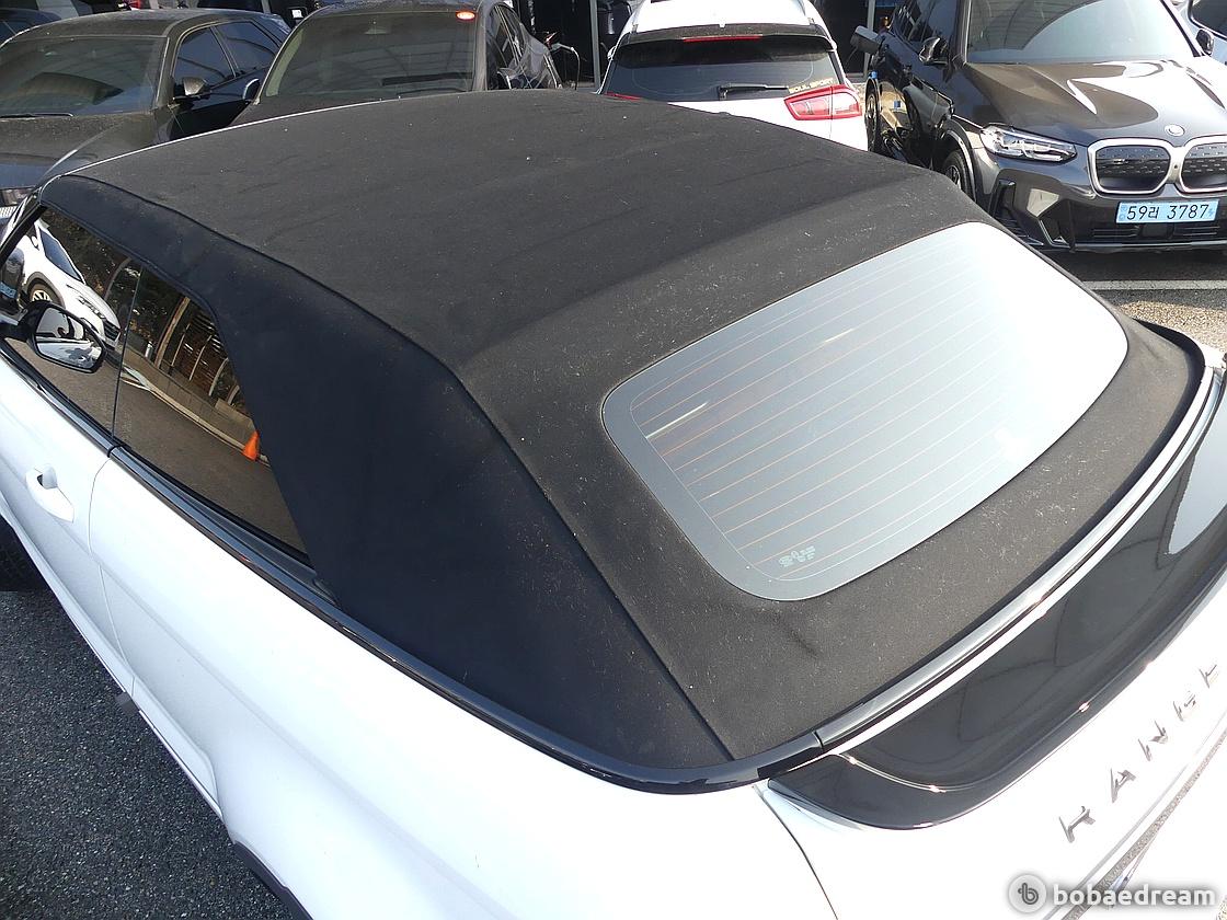 보통 지붕이 열리는 차들은 트렁크 수납공간이 좁지만 이보크 컨버터블은 골프백이나 접이식 유모차같이