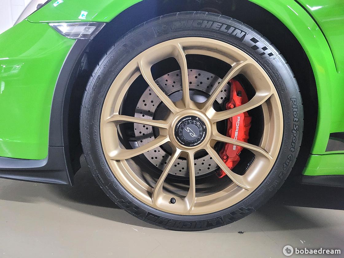 마그네슘 휠을 통해 차체 중량을 최대 1천4백30kg까지 줄일 수 있다. 신형 911 GT3 RS는 포르쉐가 축적해 온 레이싱