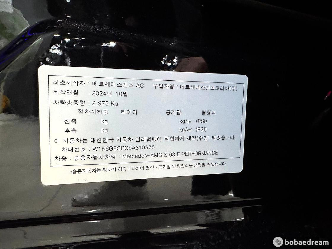 2025년 4월식 벤츠 AMG S63 E 퍼포먼스 4매틱 모델을 판매합니다.》현금차량/정식출고/보험이력 0원 무사고 운행》리어 모니터/오토 플러시 도어 등.. 다양한 옵션》V8 터보+전기 모터 결합, 강력한 PHEV 플래그십 세단 ▶본 차량상태..- 현금차량