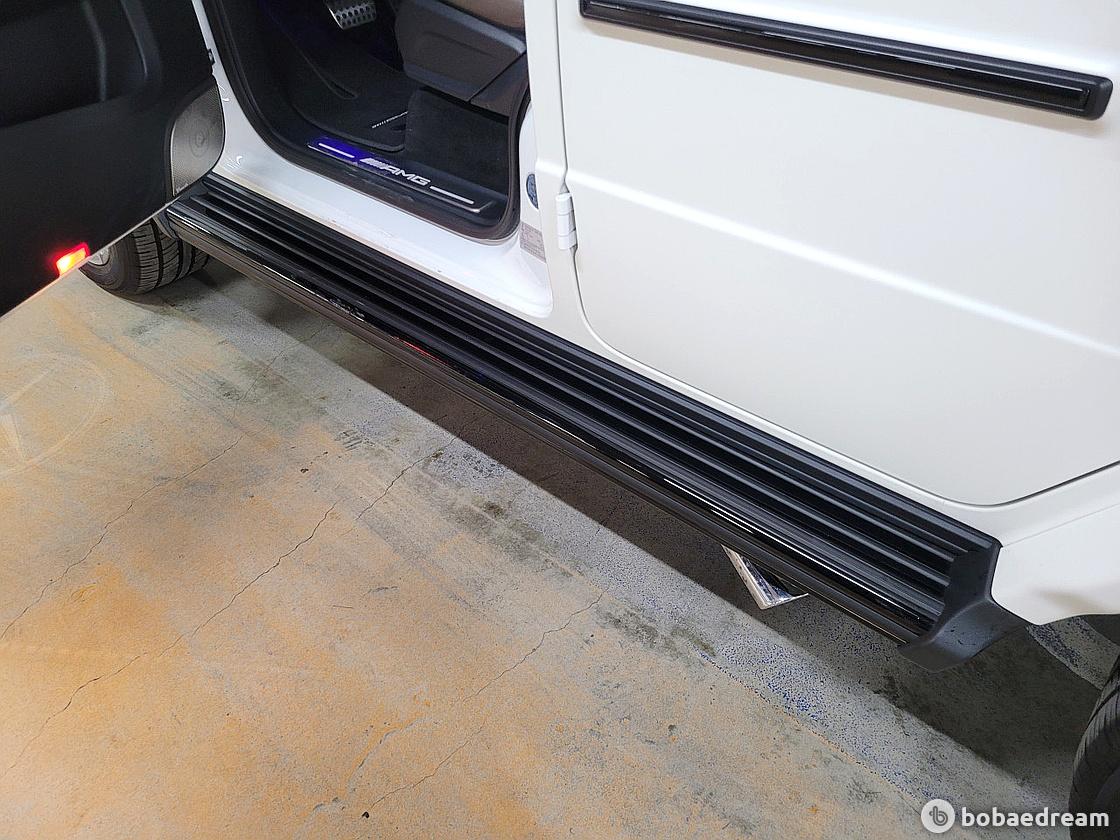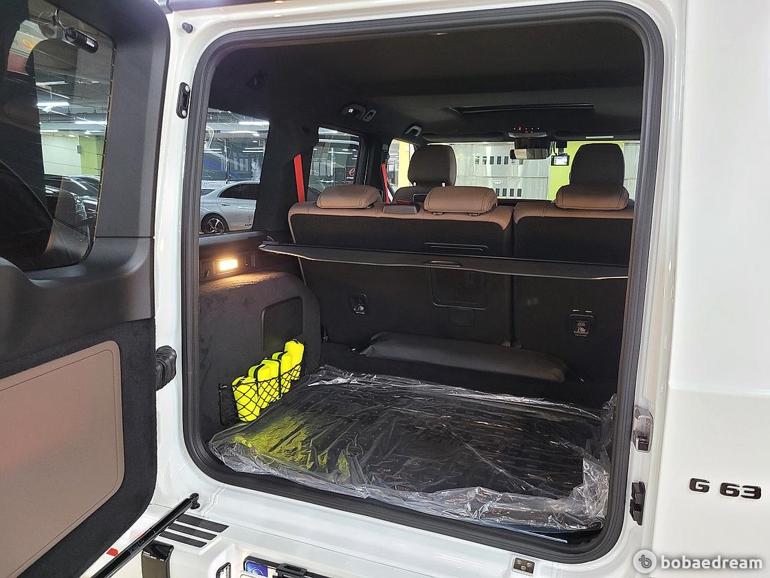 스텔스한 모습을 한 G63에는 측면 미러 캡, 합금 휠 및 검은색의 "AMG" 문자로