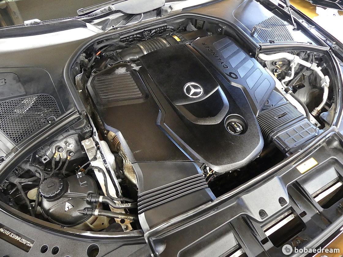 높은 라디에이터 그릴이 인상적이다. S클래스의 전형적인 3줄 주간주행등을 평면적이고 작게 디자인했다.