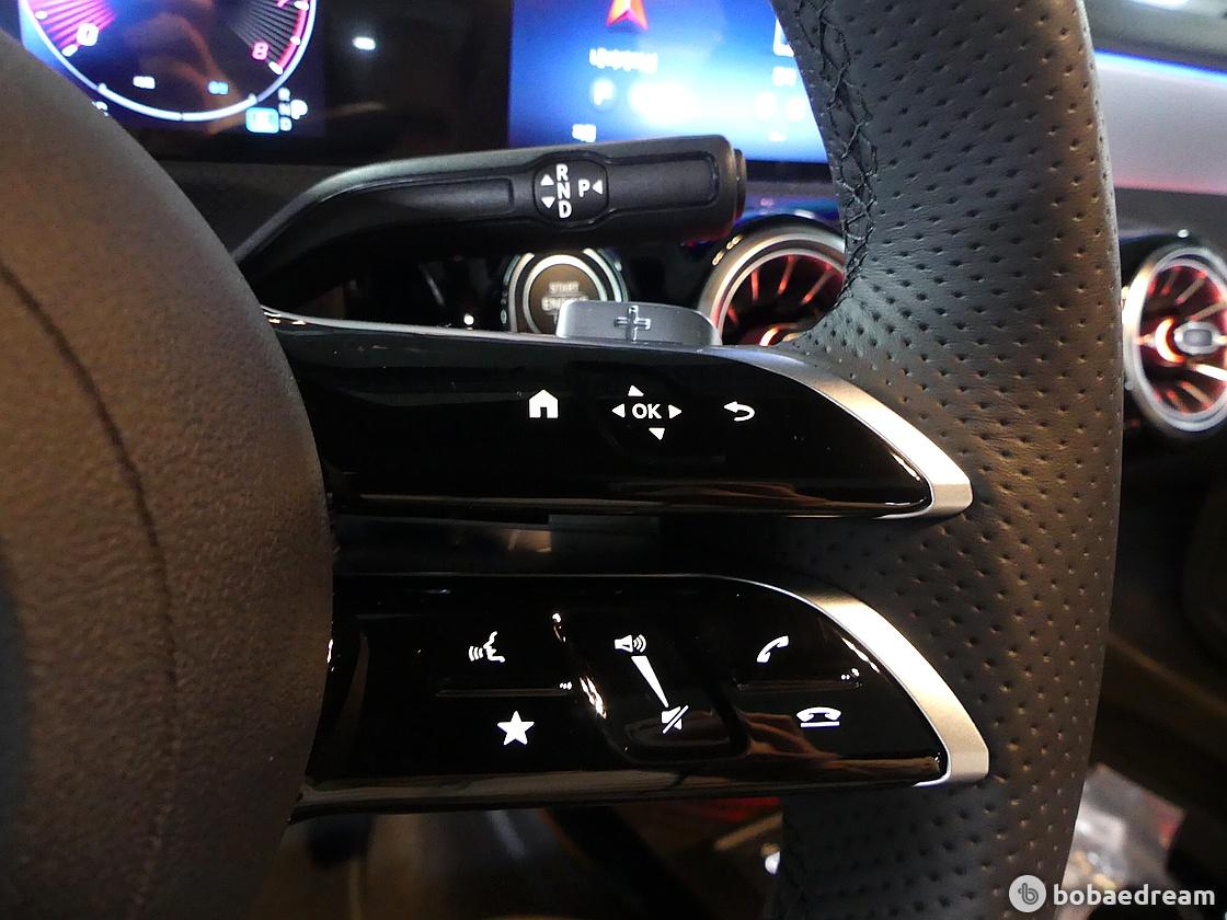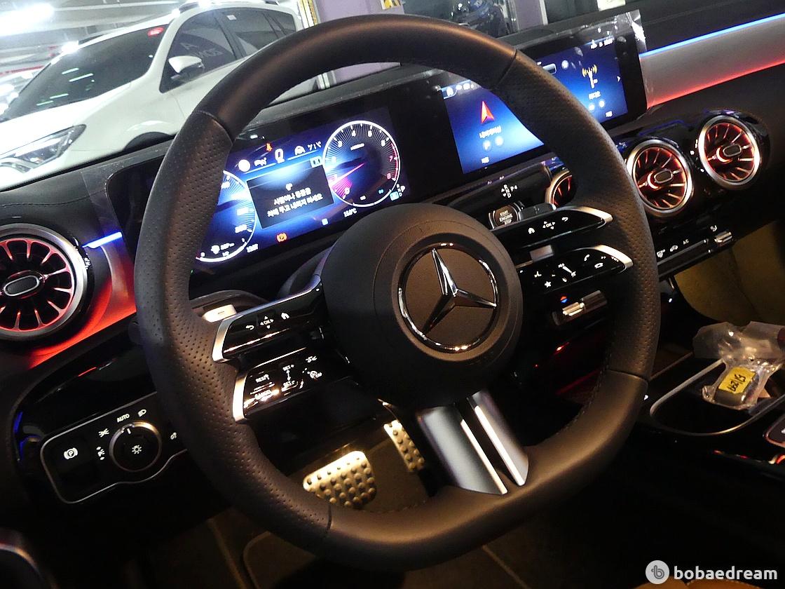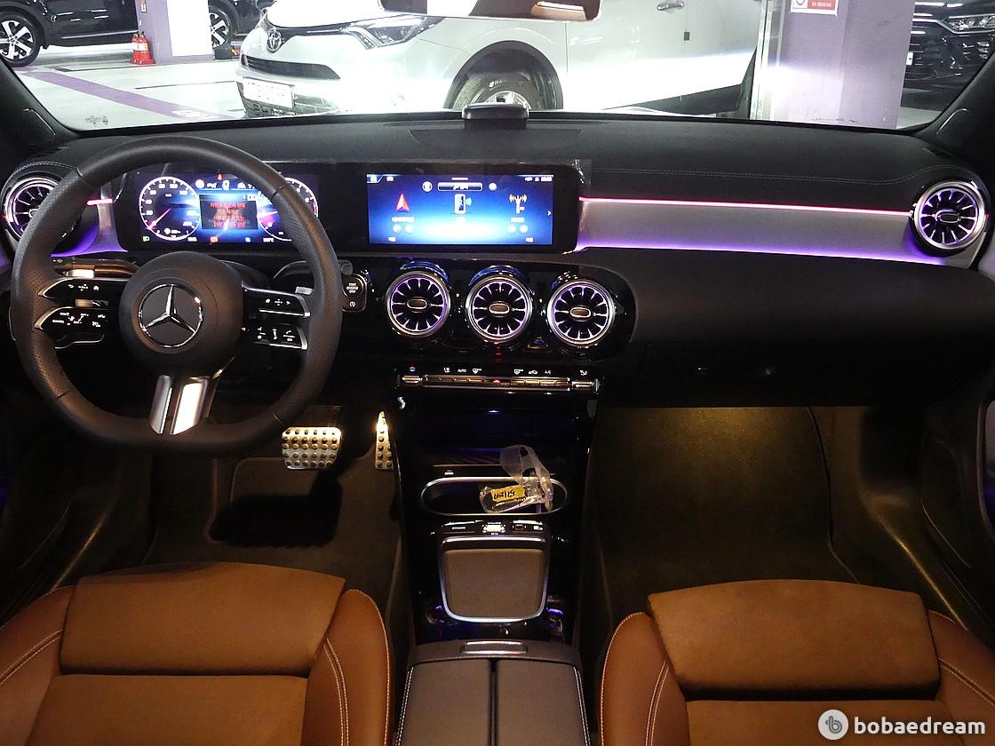 인테리어는 같은 플랫폼을 사용하는 A클래스와 기본적으로 동일한 구성이다. 대화면 와이드 스크린 콕핏을