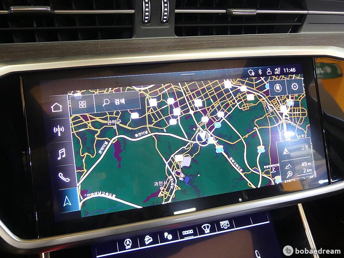 A6 TDI 콰트로 프리미엄의 실내는 이전 세대 대비 늘어난 전장과 휠베이스 길이 덕분에 보다 여유로운