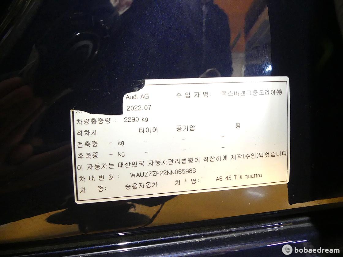 2022년 10월식 아우디 A6 45 TDI 콰트로 프리미엄 모델을 판매합니다.