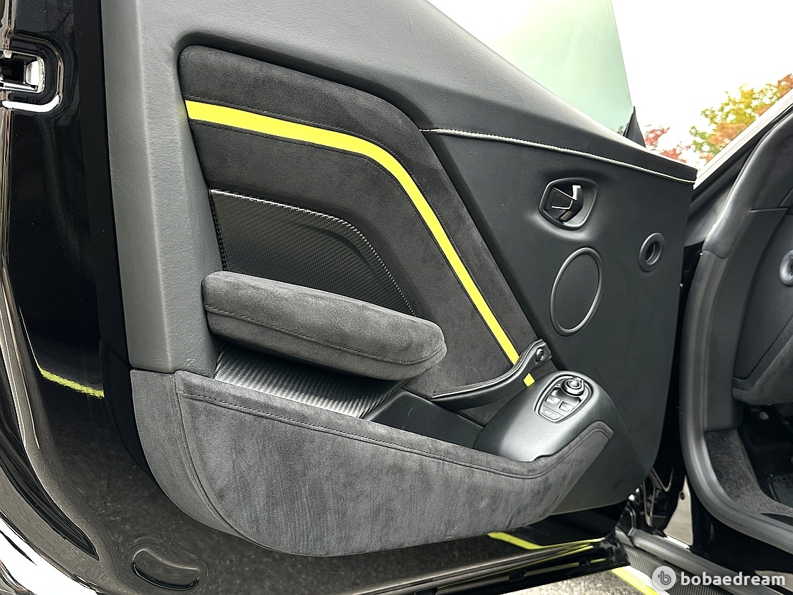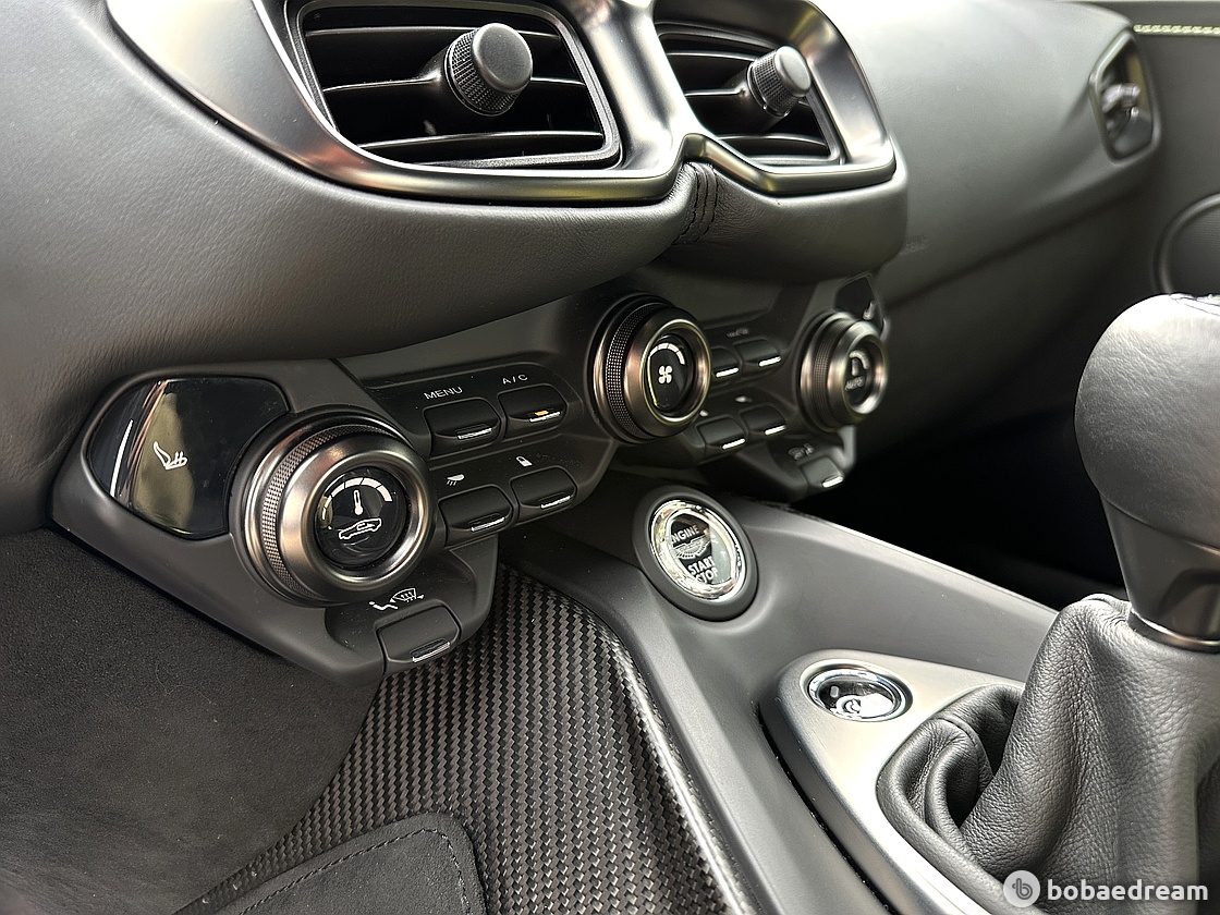 1단 도그 시스템이 적용된 애스턴 마틴의 ‘AMSHIFT’ 7단 수동 변속기만이 장착된다. 덕분에 70kg 이상