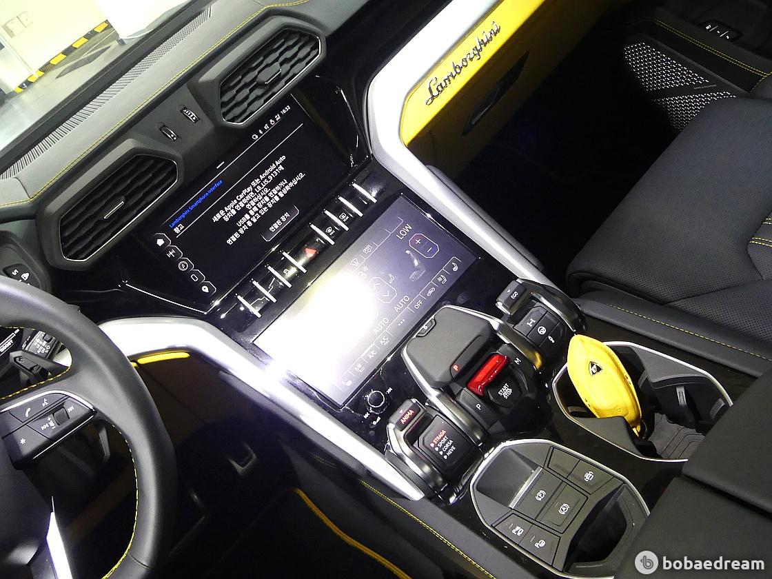 인테리어 디자인은 우루스 퍼포만테의 스티칭 패턴이 들어간 바이 컬러 스포르티보(Bi-color Sportivo)와 바이