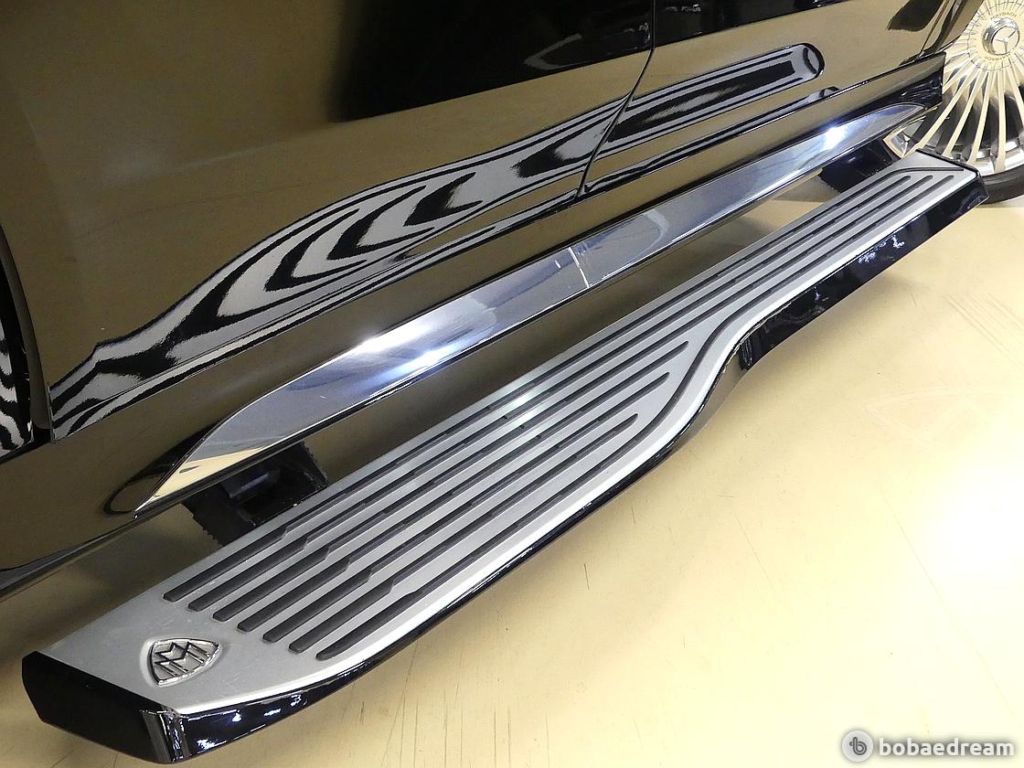 그릴의 촘촘한 세로형 크롬 스트럿(chrome struts), D 필러를 비롯해 차량 외관 곳곳에 위치한 마이바흐 브랜드