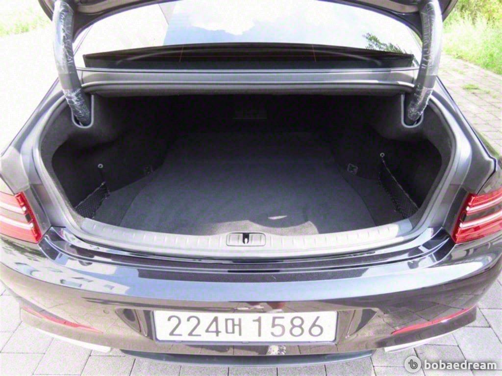 것이다. 또 좌우로 길게 뻗은 트렁크 상단의 크롬 장식과 전동 트렁크 버튼은 제네시스 로고를, 듀얼 머플러는