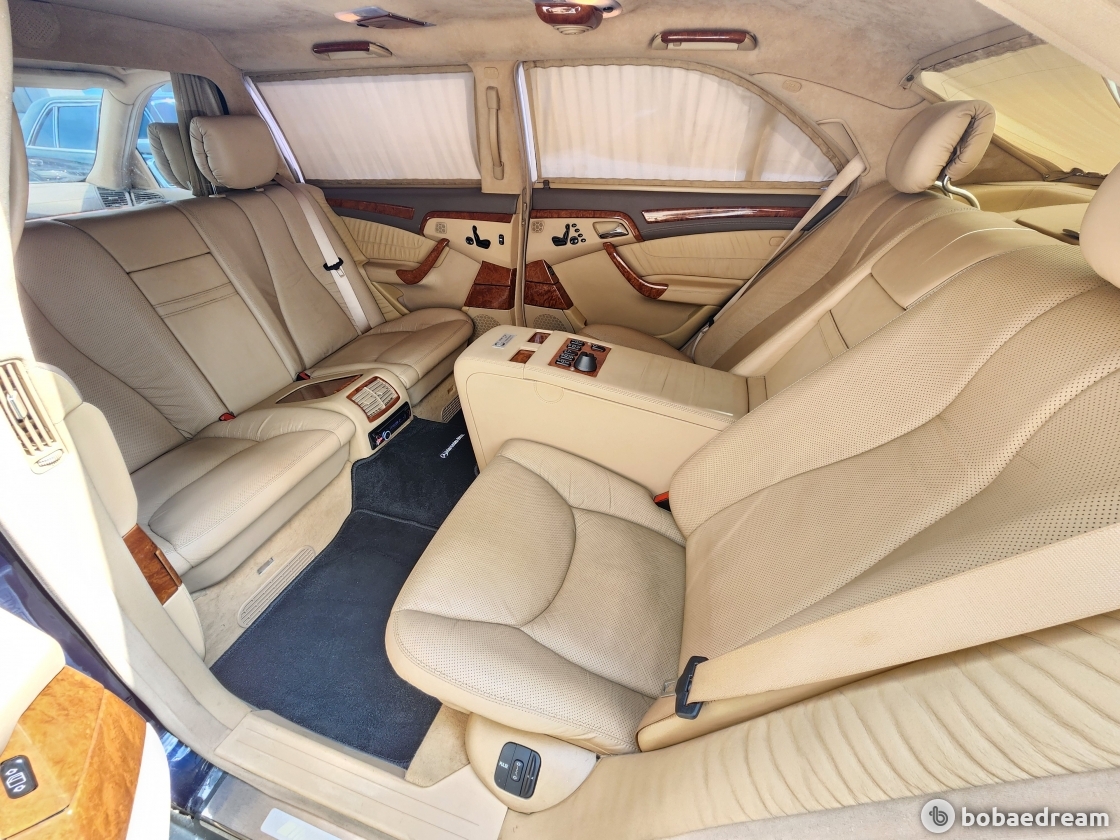 2001년형 (2005년 1월 등록) 벤츠 S600L 리무진 풀만 모델을 판매합니다.》무사고/풍부한옵션 + V12엔진 탑재 모델임을 강조 》신품타이어 + 완벽 정비 희소성 높은 차량임을 강조》더욱 력셔리한 실내.외/넉넉한 공간의 PULLMAN 차량임을 강조▶본 차량상태..- 직수입