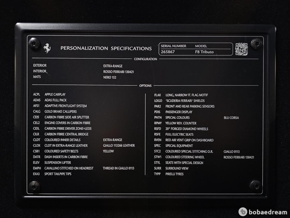 2021년식 페라리 F8 트리뷰토 3.9 V8 모델을 판매합니다.