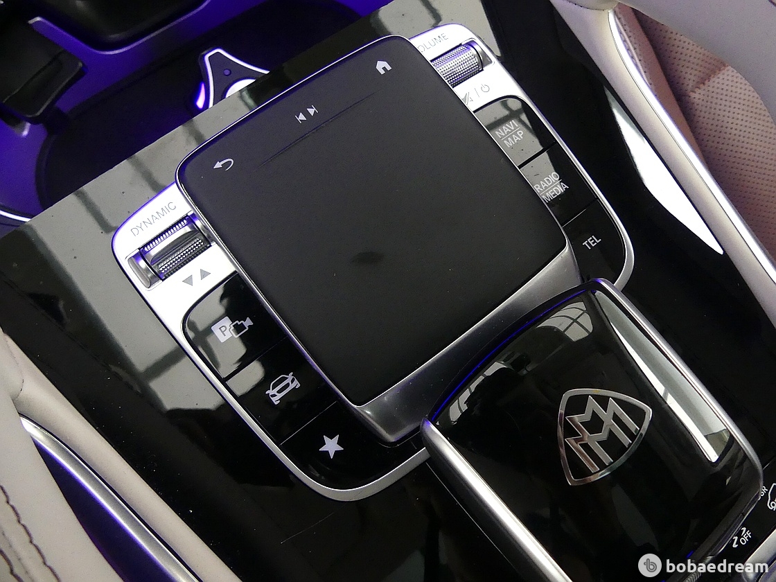 엠블럼은 메르세데스-마이바흐로서의 정체성을 강조한다. 최상급 소재와 효율성을 극대화시킨 소음 차단 기술이