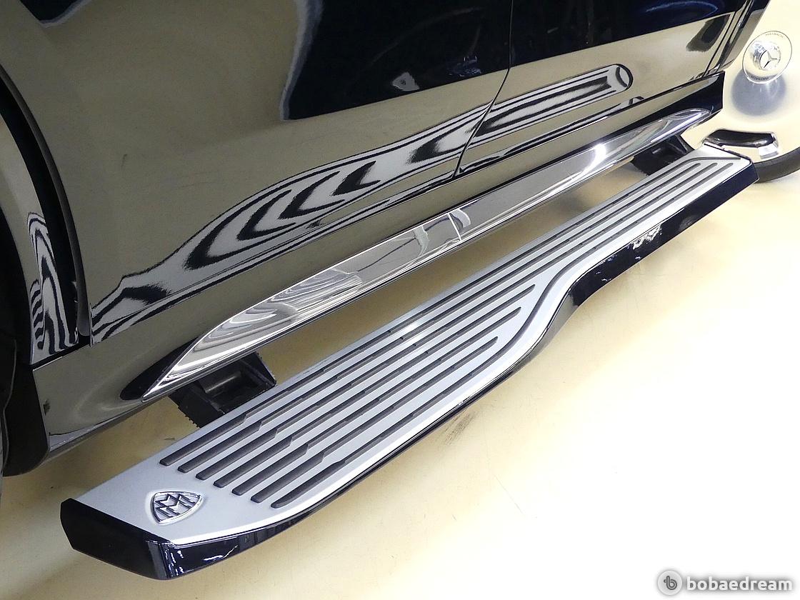그릴의 촘촘한 세로형 크롬 스트럿(chrome struts), D 필러를 비롯해 차량 외관 곳곳에 위치한 마이바흐 브랜드