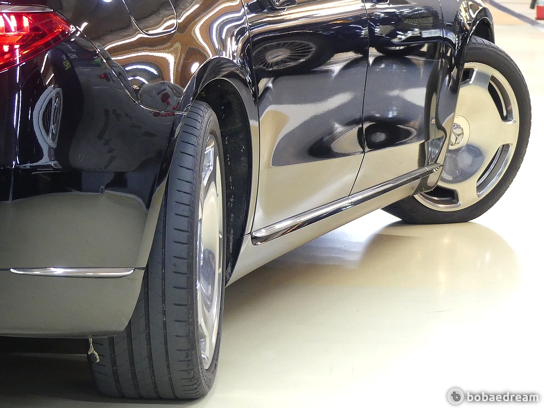 측면은 넓은 뒷좌석 도어와 크롬 처리된 B-필러, C-필러에 부착된 마이바흐 브랜드 엠블럼, 마이바흐 전용