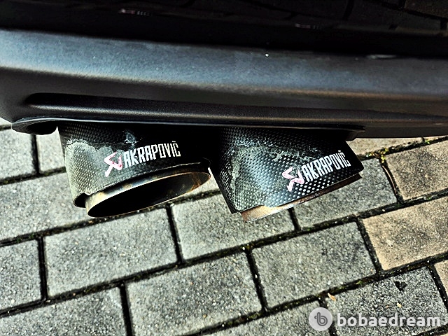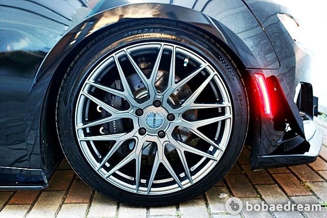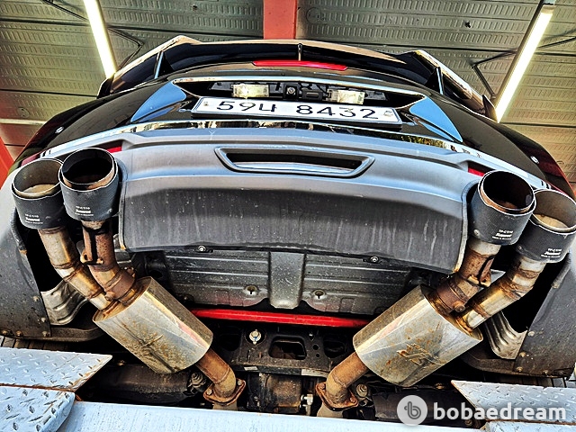 후면에는 스탠션 타입 스포일러(Stanchion Spoiler), 대구경 듀얼 머플러가 장착되었다. 휠은 20인치