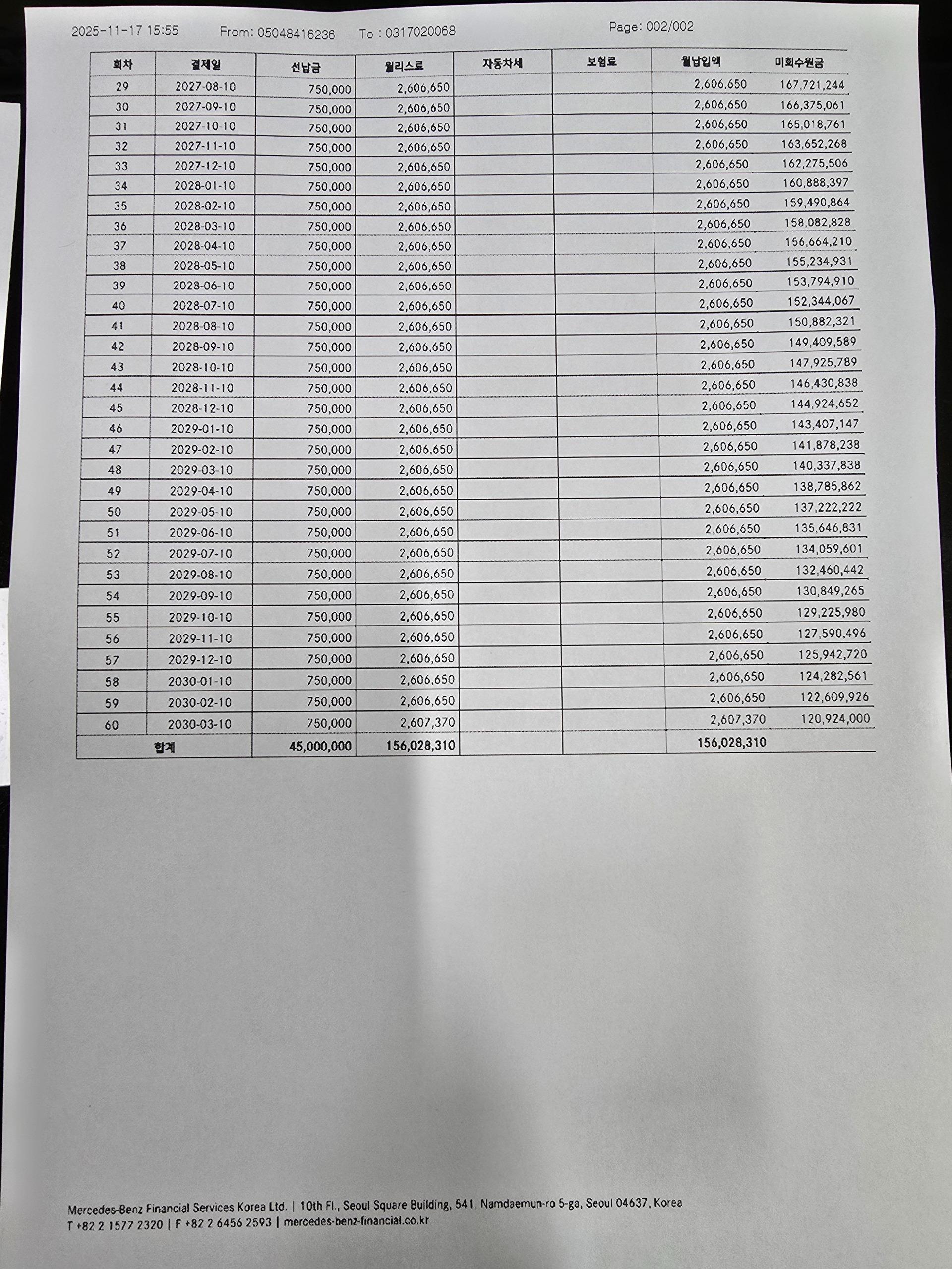 ▶리스 스케줄표