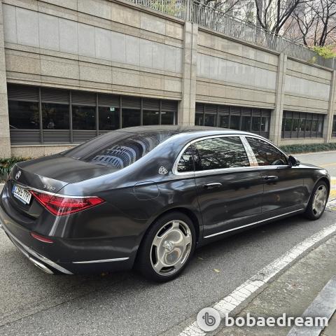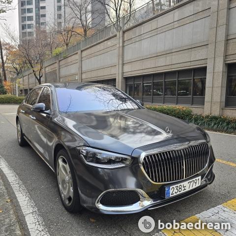 2024년형 (2025년 3월 등록) 벤츠 마이바흐 S580 4매틱 모델을 판매합니다.》흰색 바디 → 쥐색 랩핑》정식출고/무사고 운행 차량임을 강조》뒷좌석 독립시트/리어 모니터/파노라마 선루프/플러시 도어 핸들 등.. 풍부한 옵션