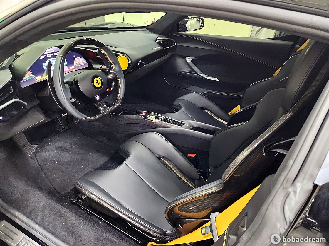 실내 인테리어는 SF90 스트라달레를 통해 선보인 풀 디지털 인터페이스를 토대로 디자인됐다. 인테리어