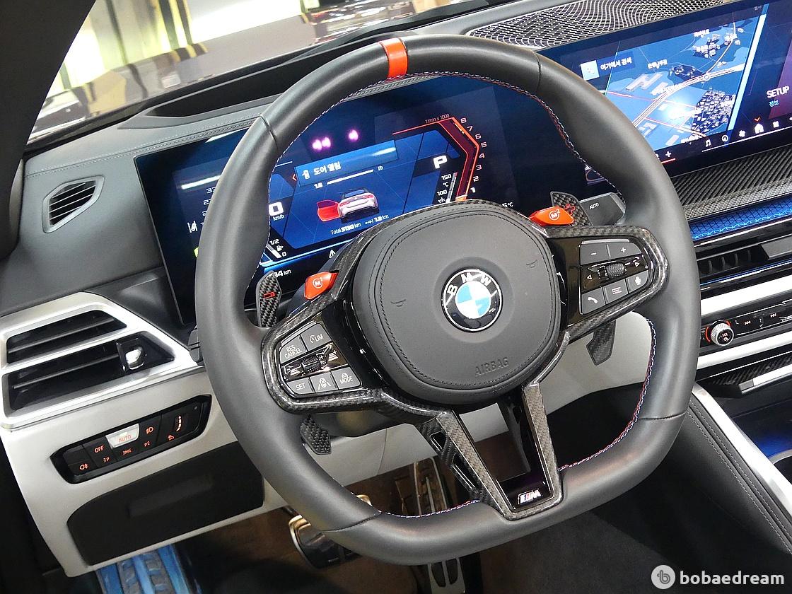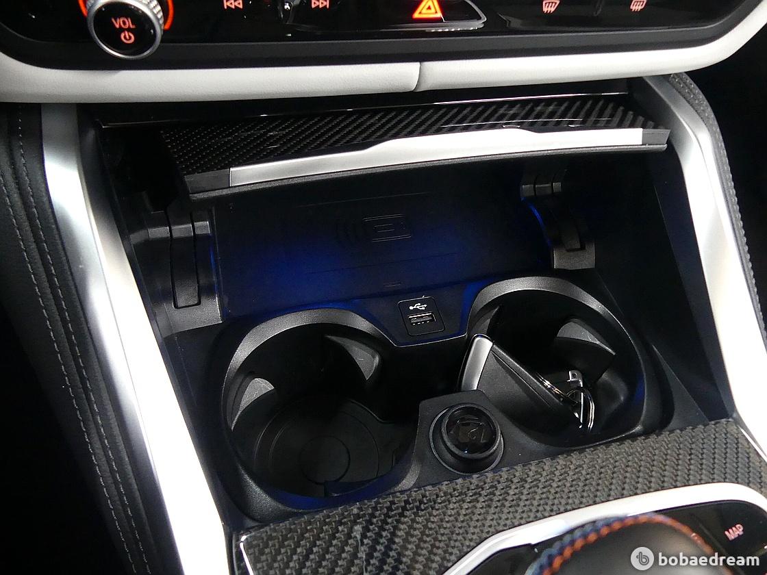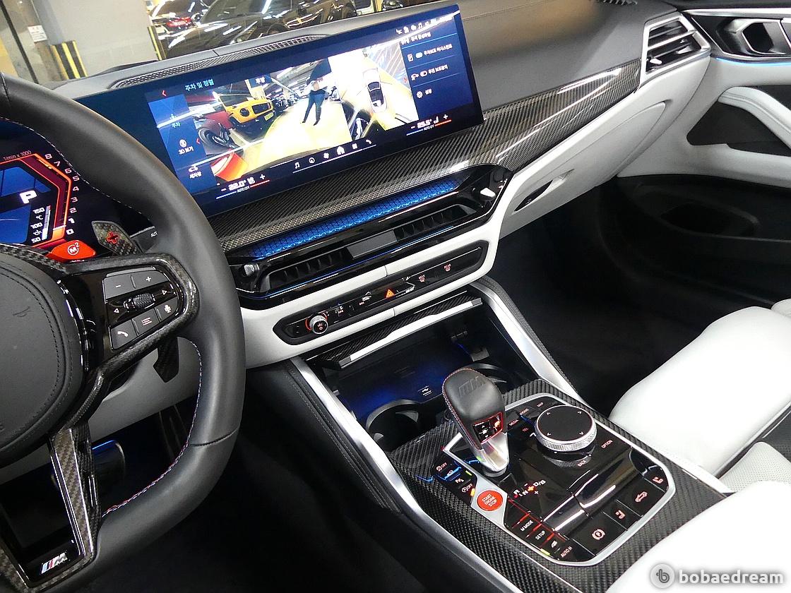 실내 공간의 구성은 M4 컴페티션의 구성을 고스란히 반영, 카본파이버 및 다양한 경량 소재와 역동적