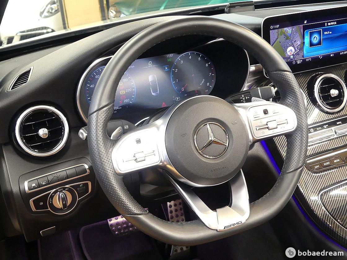 실내에는 AMG 인테리어 라인이 적용돼 하단이 편평한 스포츠 스티어링 휠과 알루미늄 트림, AMG 스포츠