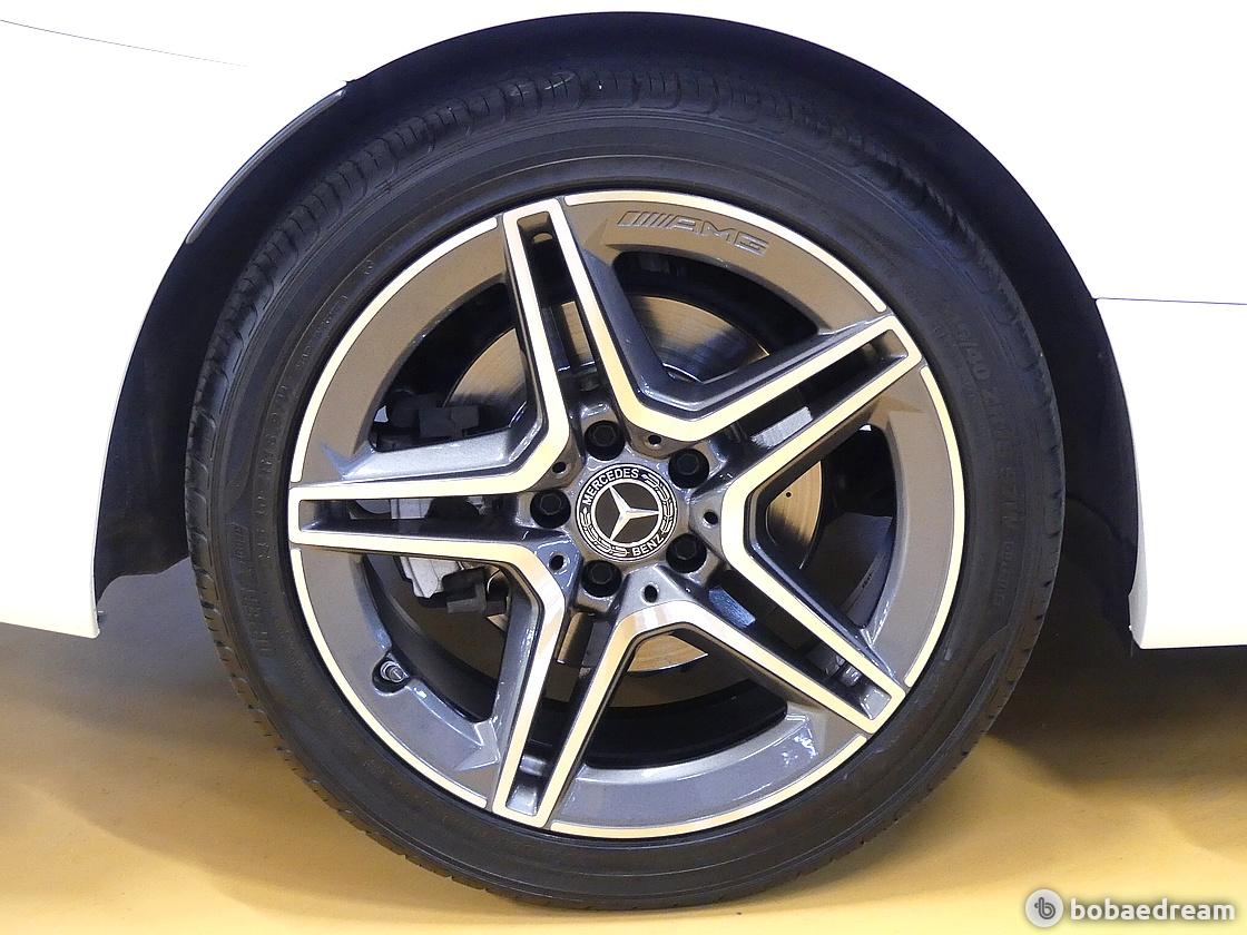 더뉴 C200 카브리올레는 크롬핀 장식의 라디에이터 그릴과 19인치 AMG 멀티 스포크 알로이 휠, 낮은 차체의