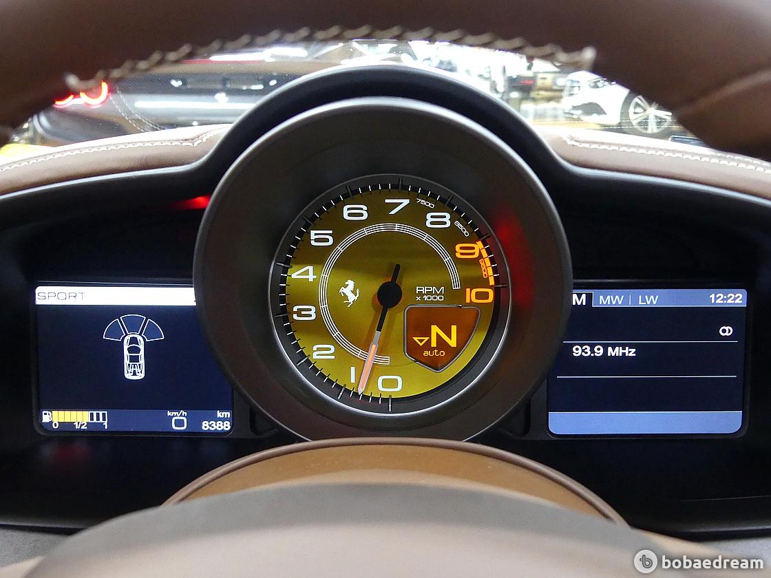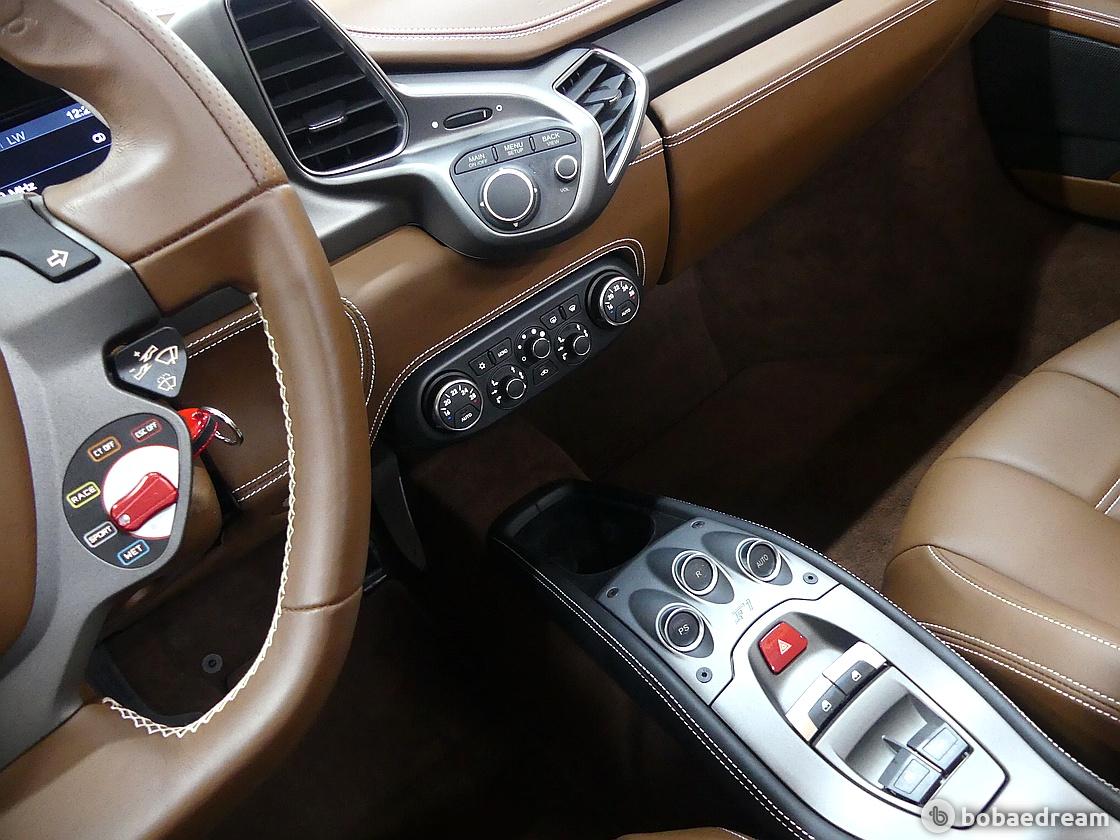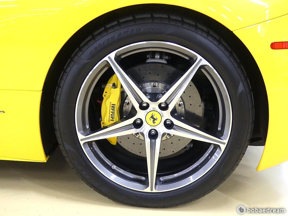 페라리 모델답게 카본 세라믹 브레이크 시스템을 탑재했다. 프런트는 394mm 카본 세라믹